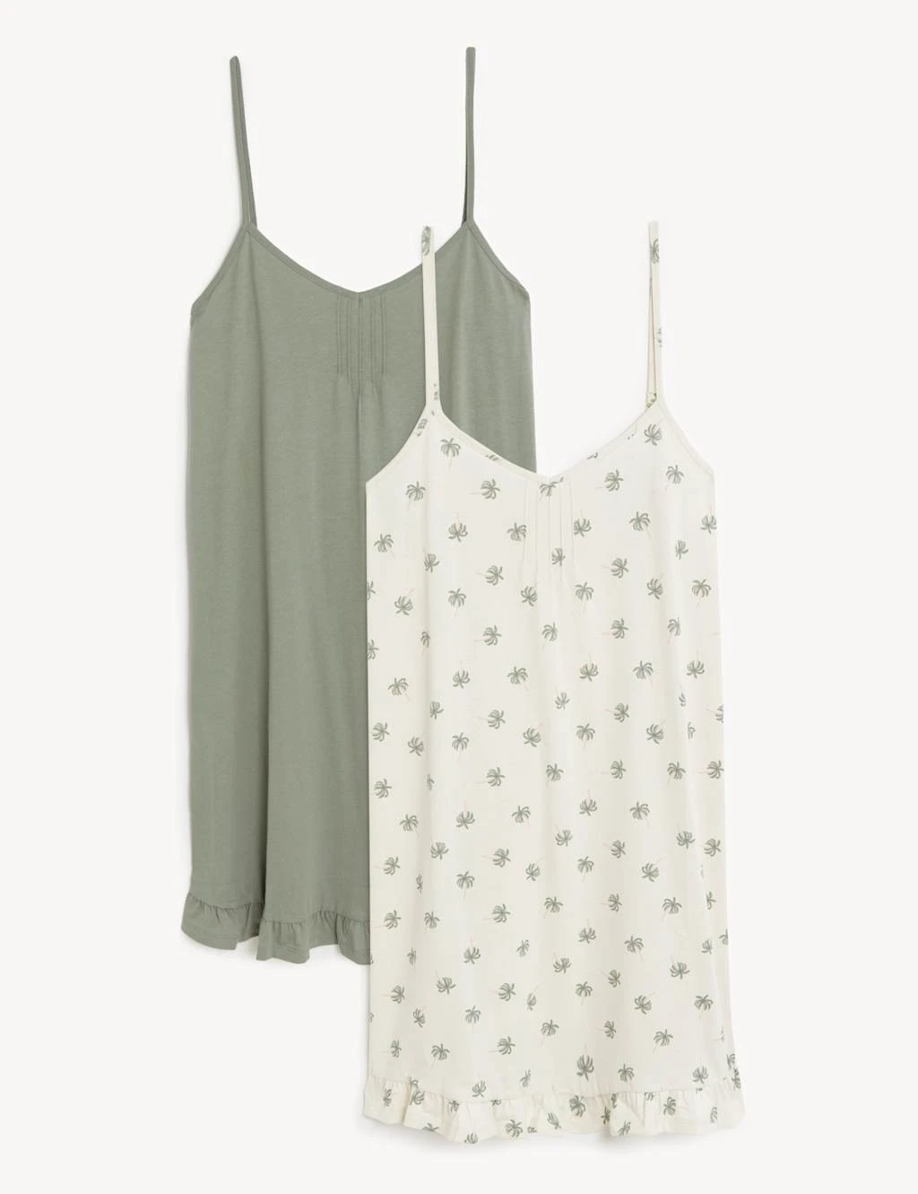 Stock up for the warmer months with these pure cotton chemises. Comfy regular fit, in a short length with adjustable straps at the shoulders. A frill at the hem adds fluttery detail. Two-pack set contains one plain design and one with an all-over palm tree print. M&S Collection: versatile styles in modern shapes with unique and playful details.