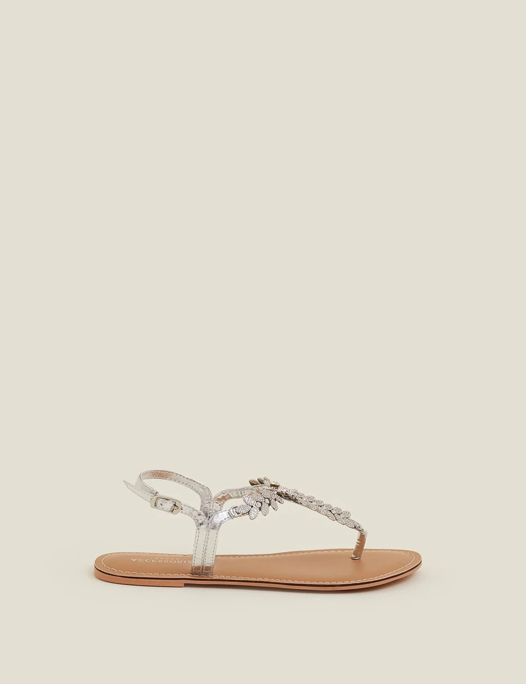 Add some sparkle to your summer ensembles with these sandals from Accessorize, featuring shimmering diamanté embellishments. The classic toe-post design has a comfortable flat sole and slim metallic straps for effortless glamour. A buckle fastening at the ankle ensures a secure fit.