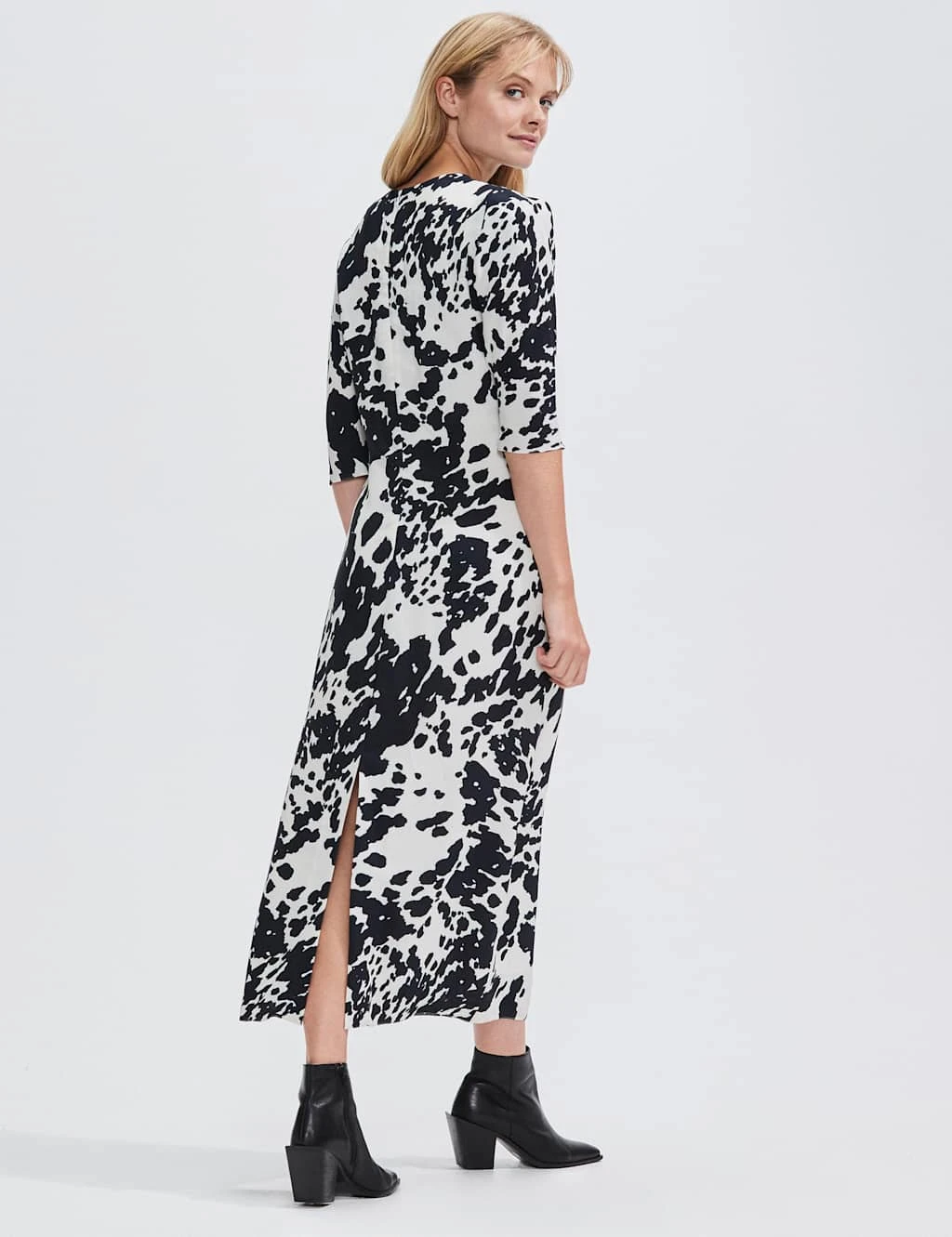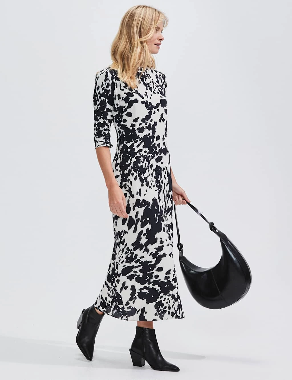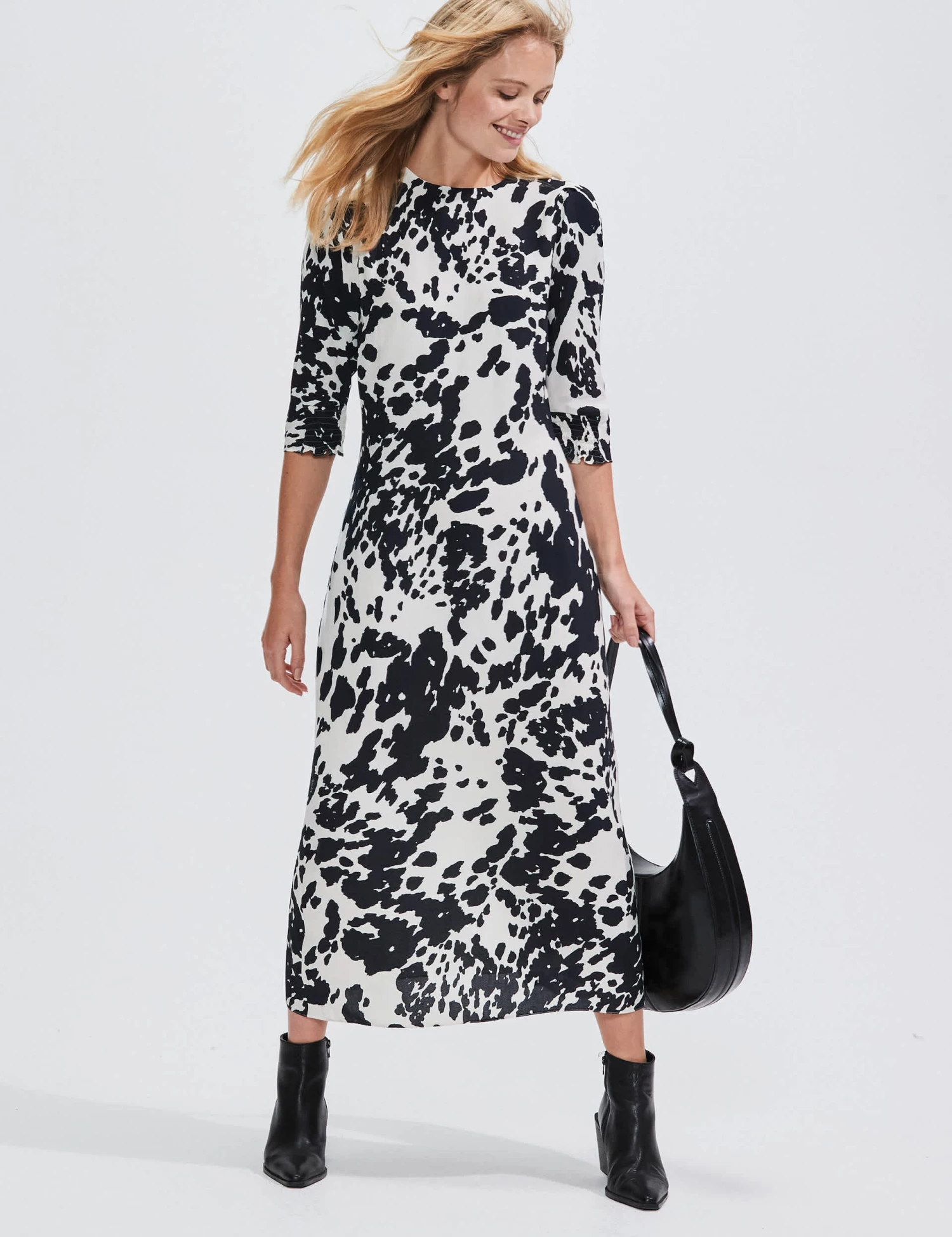This animal-print column dress by Ro&Zo is a versatile piece for day-to-night styling. It’s cut to a regular fit, with a sleek silhouette that falls to a midaxi length. This piece also has a crew neckline and flattering three-quarter length sleeves. It’s lined for a smooth drape and fastens with a discreet back zip.