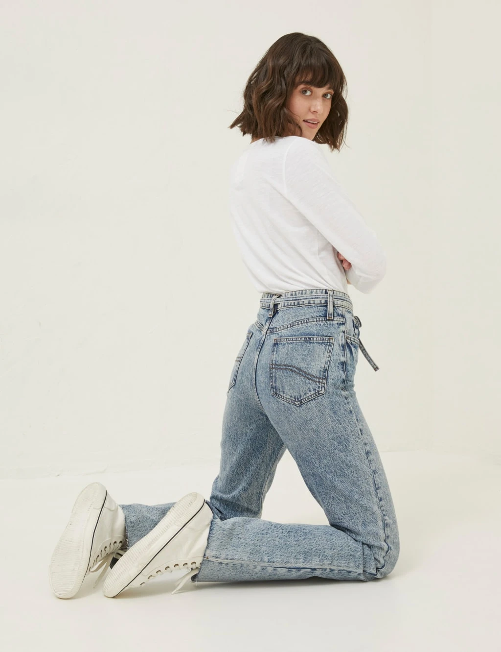 Add some feminine detailing to your denim collection with these jeans by FatFace. They’re cut in a timeless straight-leg style, with a neat button and zip fastening. A self-fabric belt ties in a bow at the easy mid-rise waistline, while the five-pocket design gives plenty of storage for small essentials.