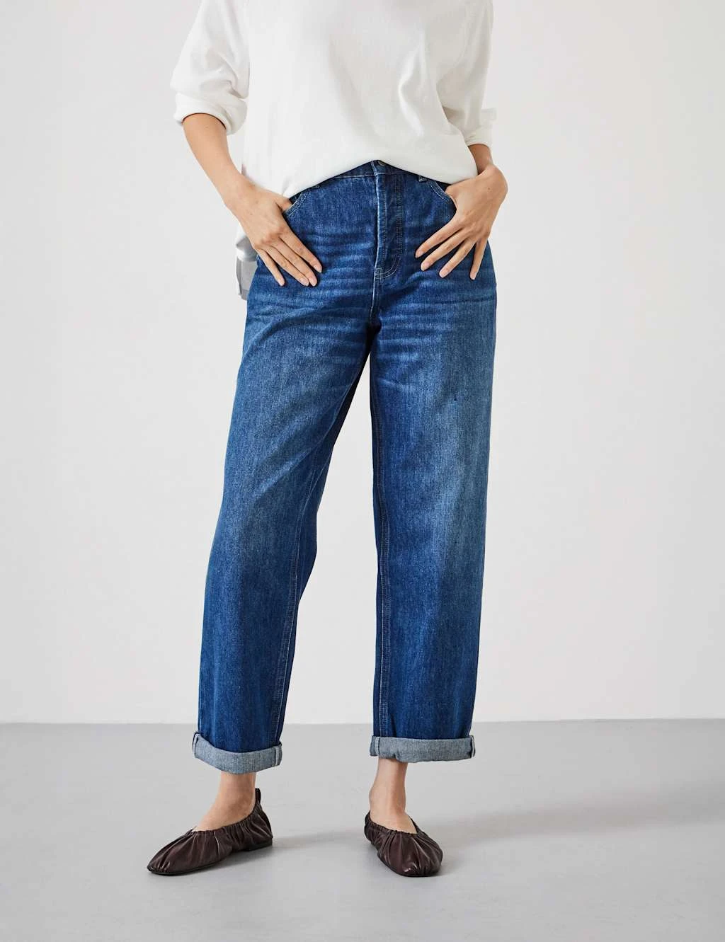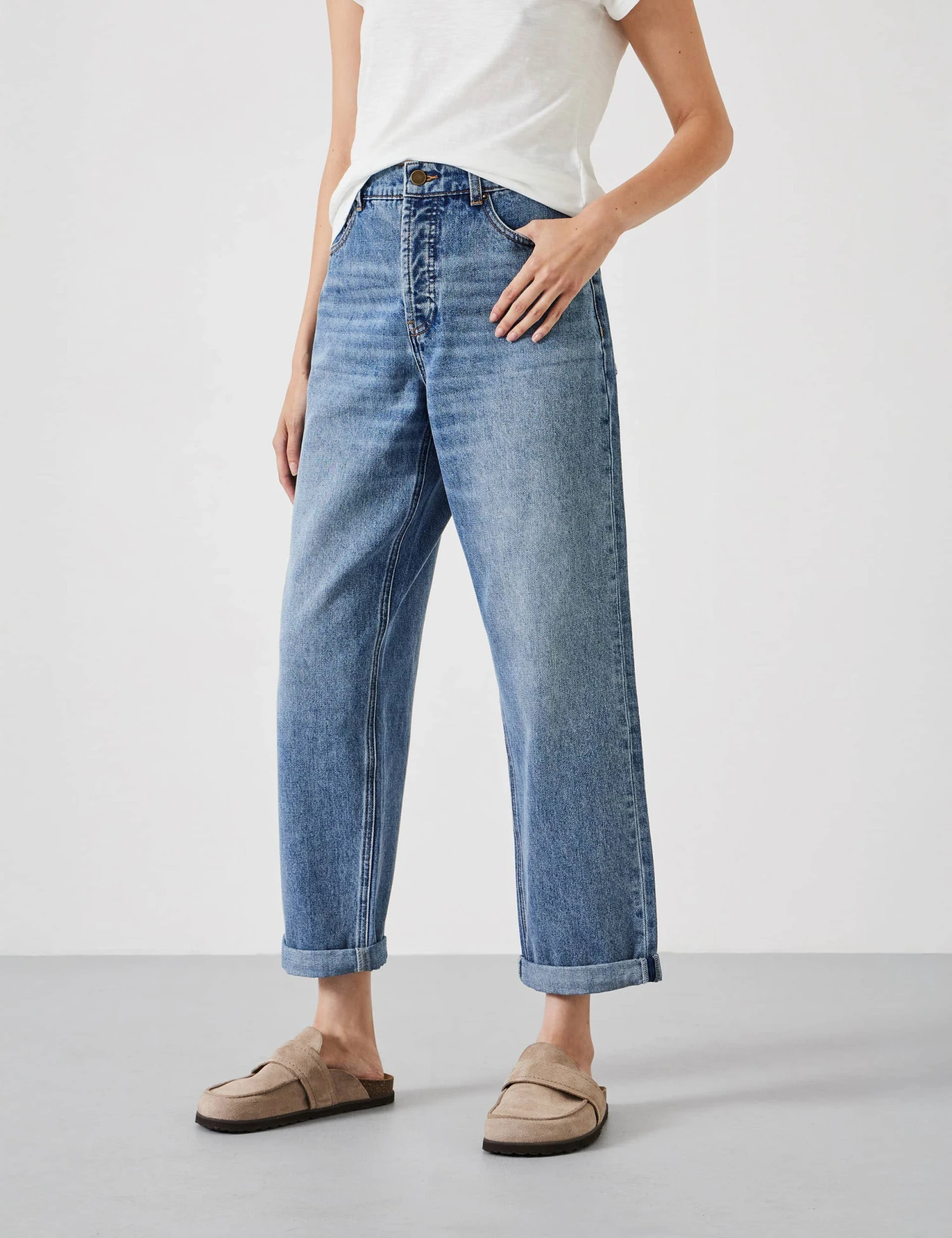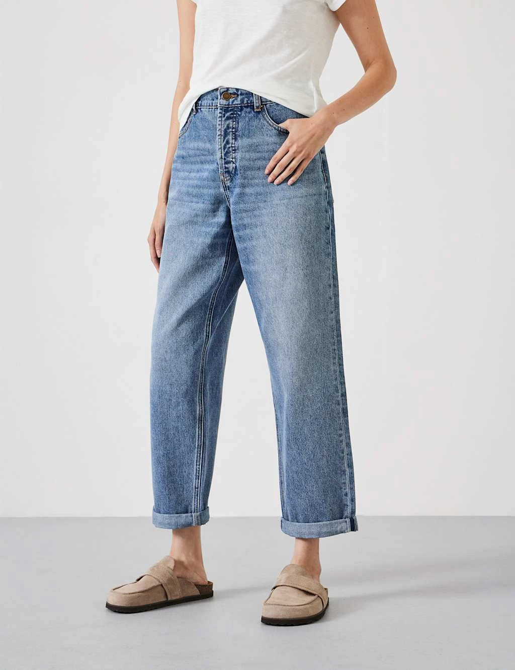 Create a laid-back look with these pure cotton denim boyfriend jeans from Hush. They sit comfortably on the waist and have a relaxed fit through the cropped leg for a flattering silhouette. A button-fly fastening and five-pocket styling provide a classic finish, complemented by whiskering and fading on the front.