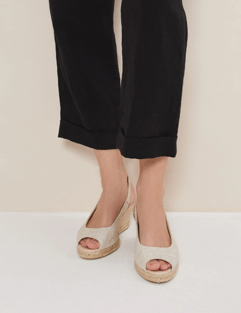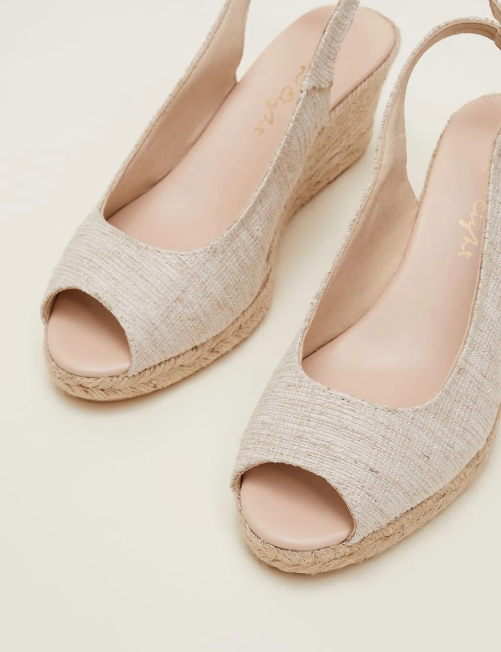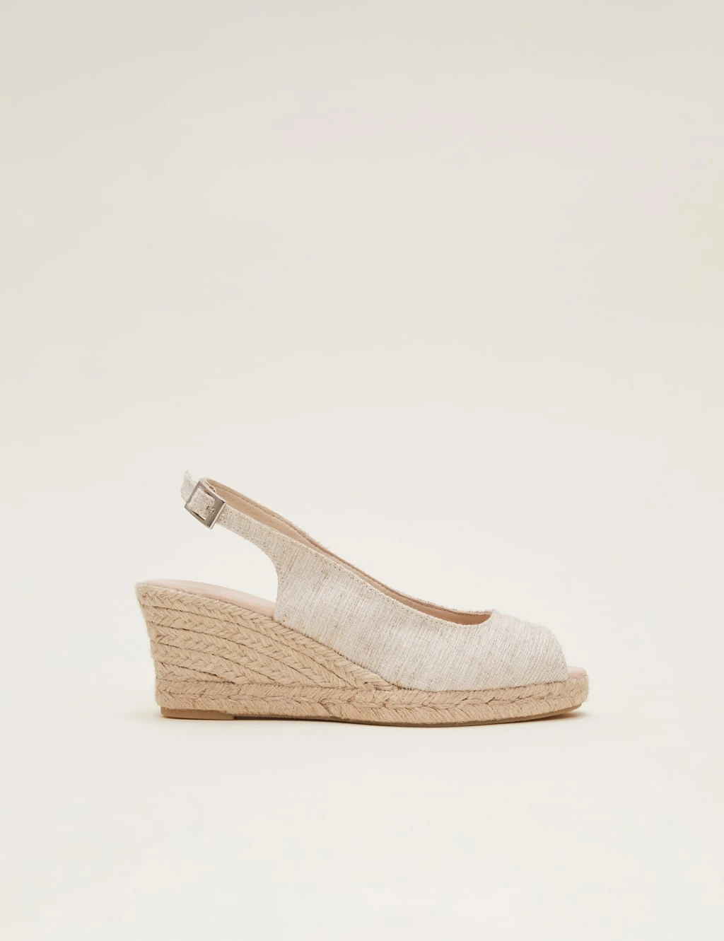 These canvas espadrilles from Phase Eight are a versatile option for your warm-weather wardrobe. They’re made with a mid-height wedge heel and feature an adjustable ankle strap with a buckle fastening. The open peep toe front gives these slingbacks a breathable finish.