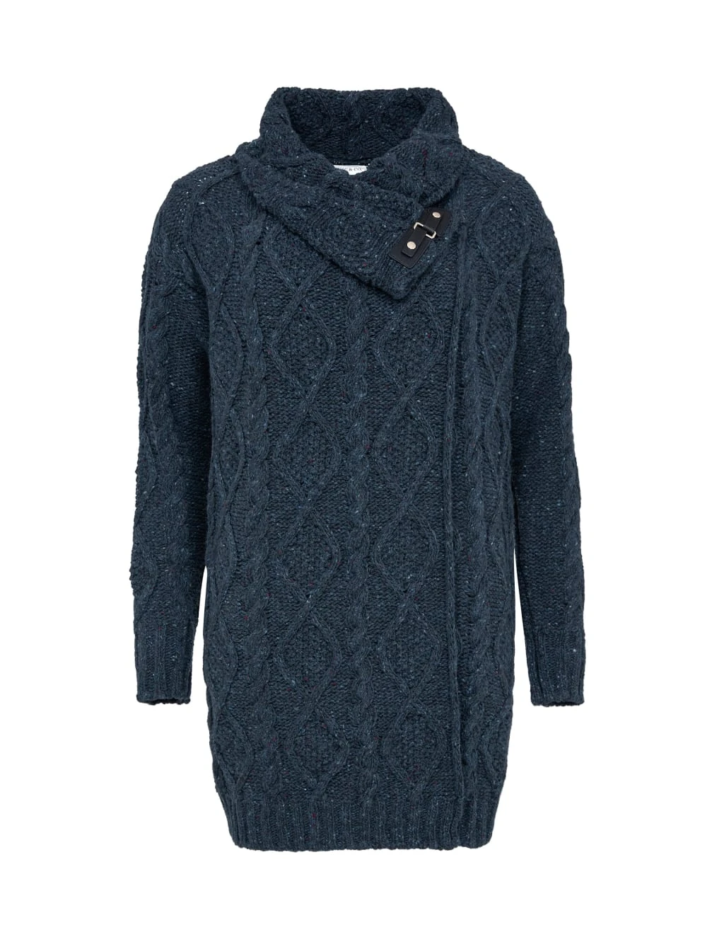 This pure wool Celtic & Co coatigan combines the cosiness of a cardigan with the practicality of a coat. It’s cut to a regular fit, with a cosy funnel neck and buckle fastening. The chunky, cable knit design adds to the snug look and feel.