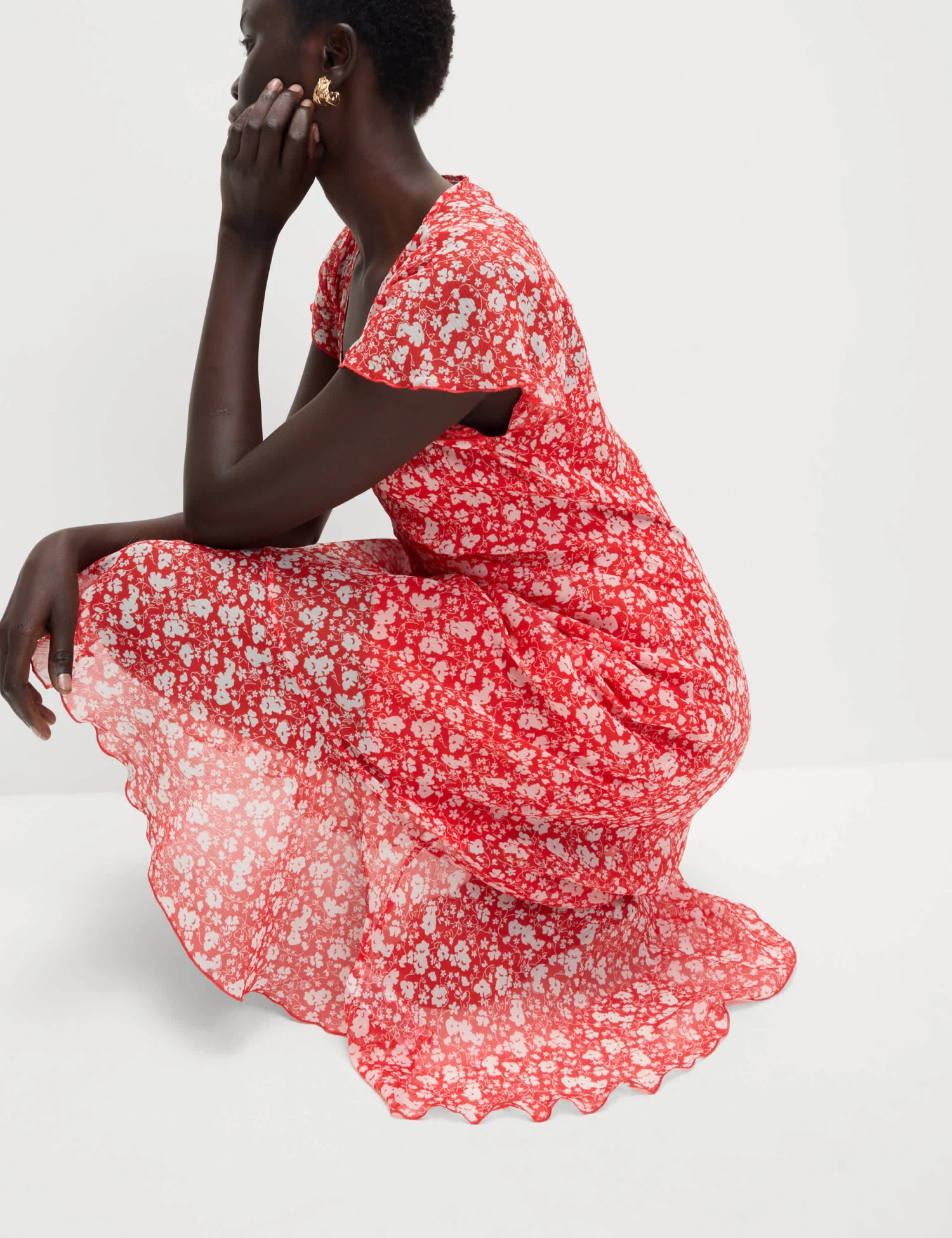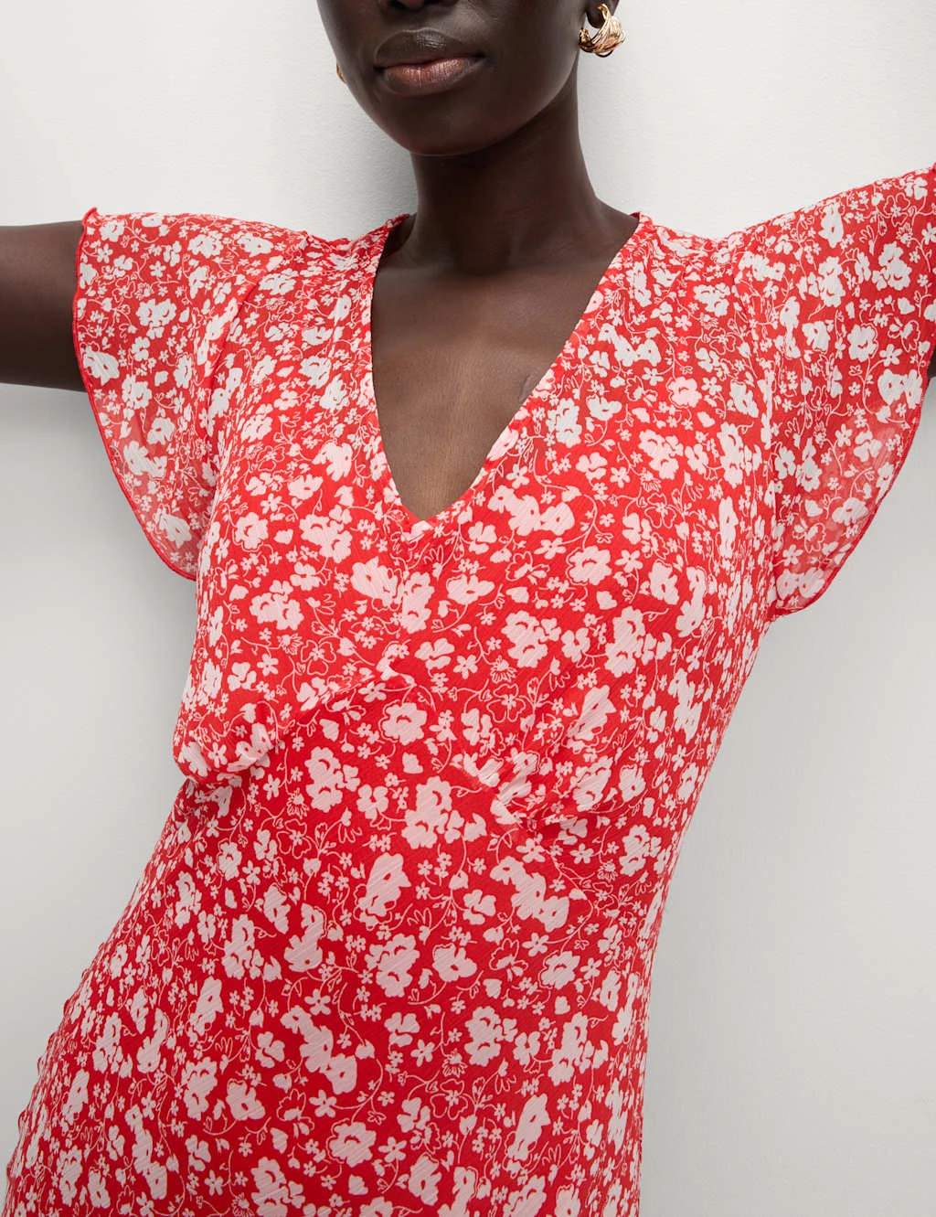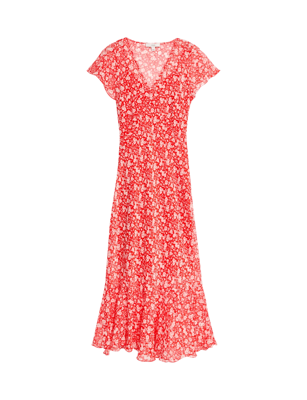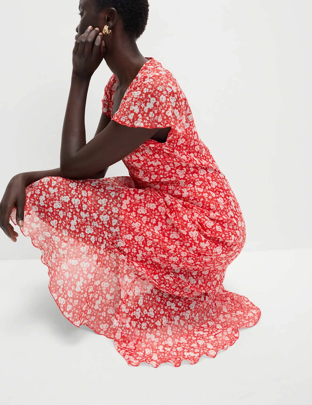 This midaxi tea dress is adorned with a floral print for a truly feminine look. It’s cut in a regular fit, with a v-shaped neckline and angel sleeves. The tie detail at the back of the waist creates a flattering silhouette. M&S Collection: easy-to-wear wardrobe staples that combine classic and contemporary styles.