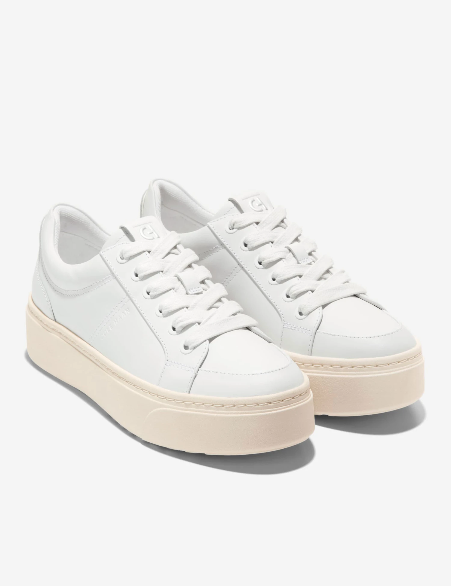 These leather trainers from Cole Haan are a stylish yet comfy choice for casual days. They’re crafted with a flat platform sole for a touch of height and a lace-up fastening for an adjustable fit. Suede panels at the heel add a premium textured look to the design.