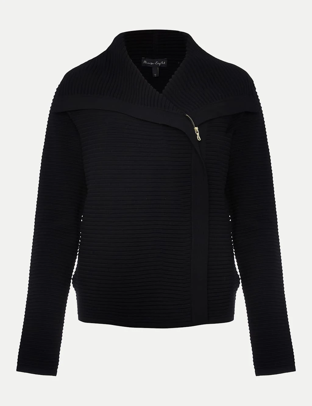 This luxe cropped jacket by Phase Eight is a versatile layer for both smart and casual outfits. Designed in a comfy regular fit, this understated piece features a contemporary oversized collar, a stylish asymmetrical zip closure on the chest and a cosy ribbed texture.