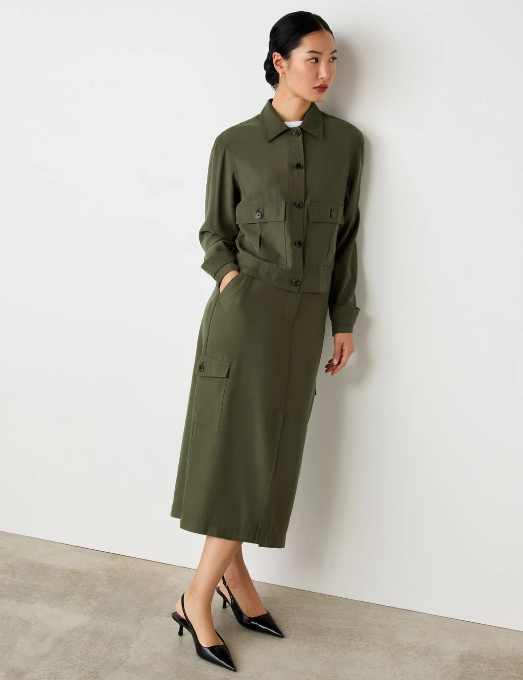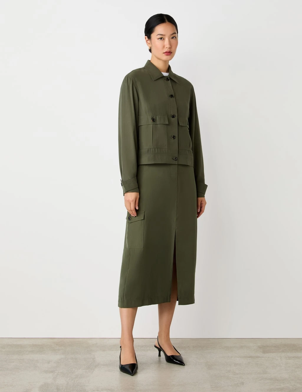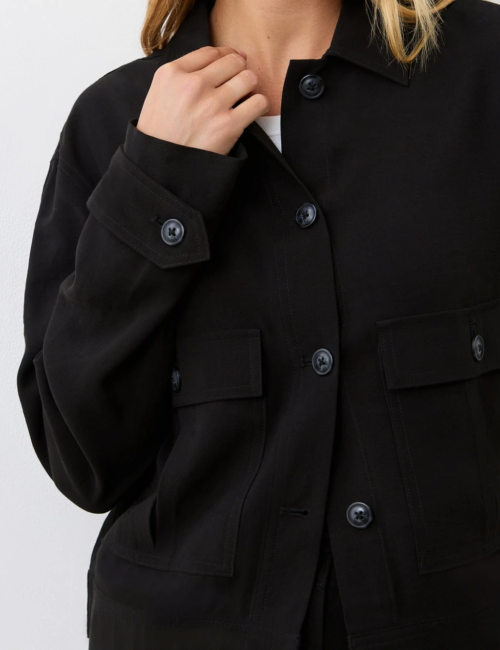 For a lightweight outer layer with utility style, pick this jacket from Finery London. It comes in a regular fit with a smart collar and a button-through fastening. The design features two buttoned flap pockets on the front, buttoned cuff straps, and tabs at the side waist.