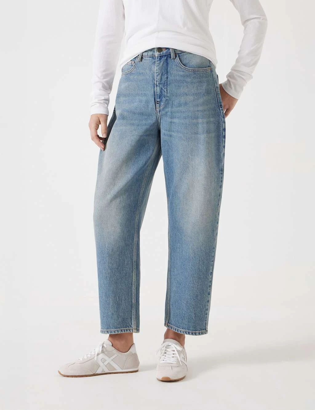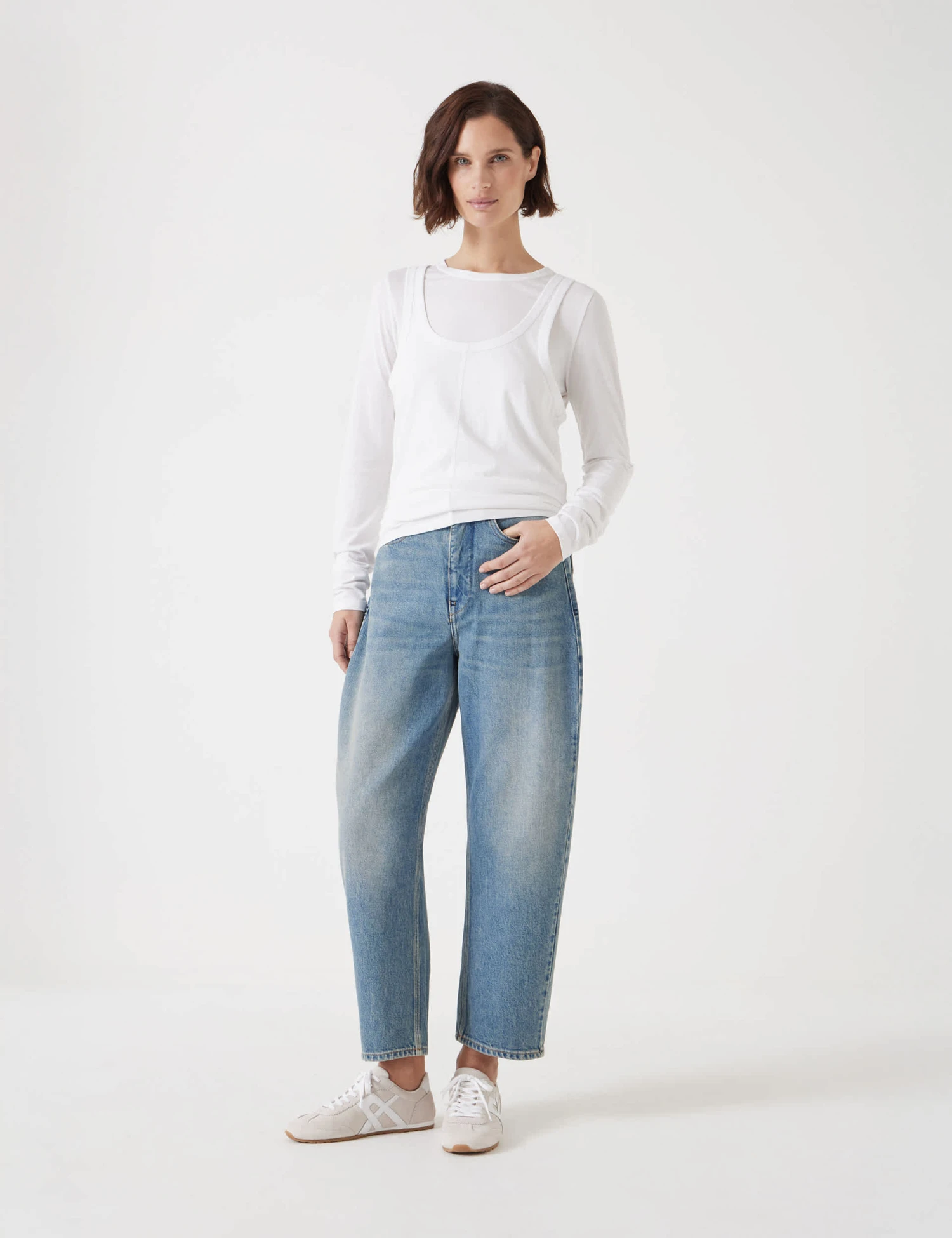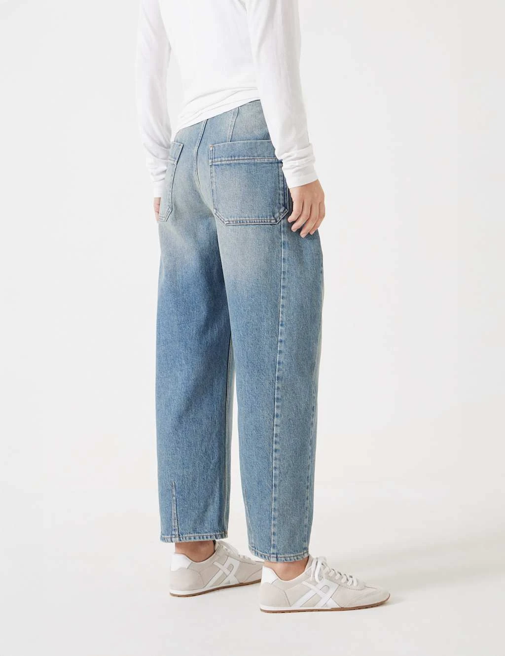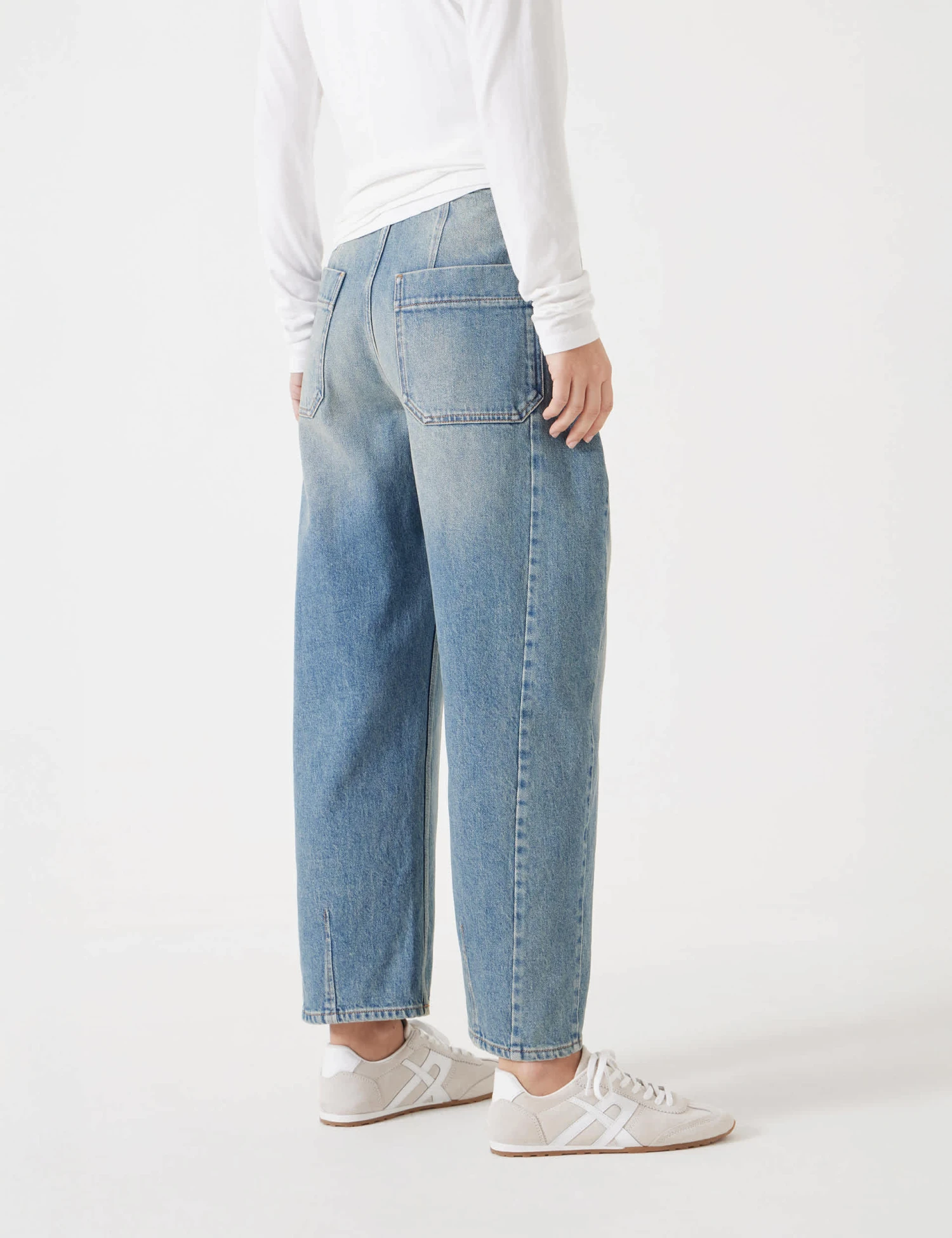 These mid-rise jeans from Hush are made from authentic light-wash rigid denim for a lived-in look. They have a contemporary barrel-leg cut and are roomier through the thigh for a laid-back feel. Five pocket styling and belt loops add timeless touches.