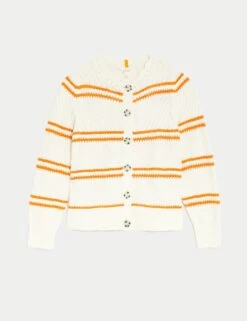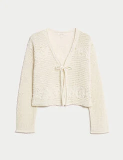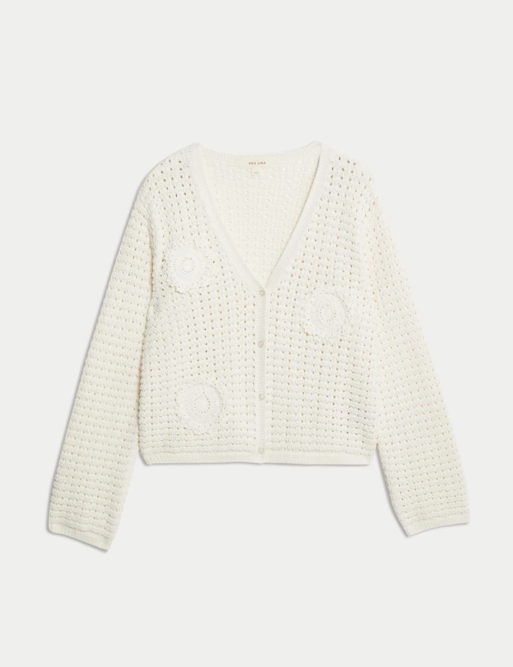 A crochet flower design brings a touch of boho charm to this cotton-blend cardigan from our Per Una collection. It’s made in a regular fit, with a timeless v-neckline and button-through fastening. This piece is finished with ribbed trims on the long sleeves and hem. Per Una: stylish designs crafted with carefully considered details and feminine flourishes.