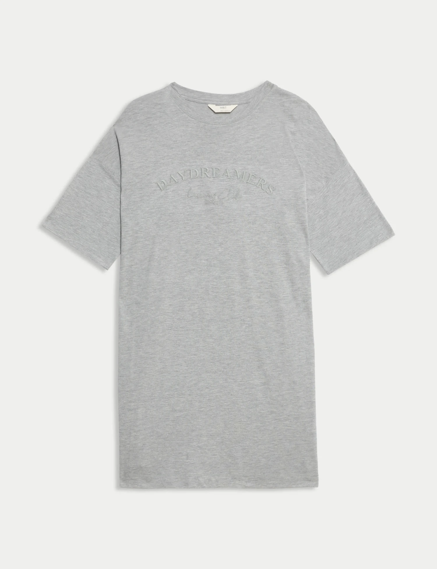 This short, cotton modal nightshirt from our Body collection will have you drifting off in comfort. Easy regular fit, with short sleeves and slouchy dropped shoulders. The embroidered slogan on the front reads ‘Daydreamers Luxury Club’ for dreamy style.