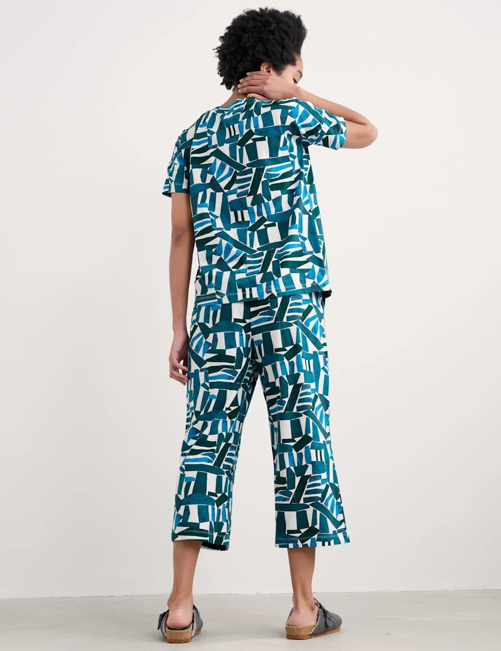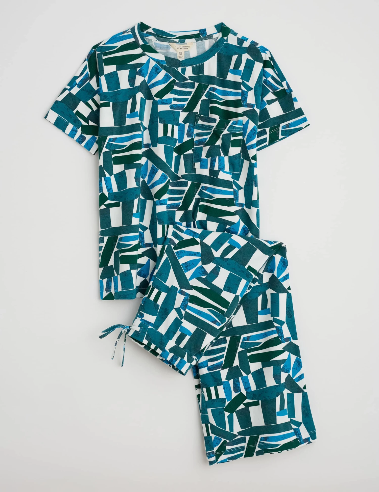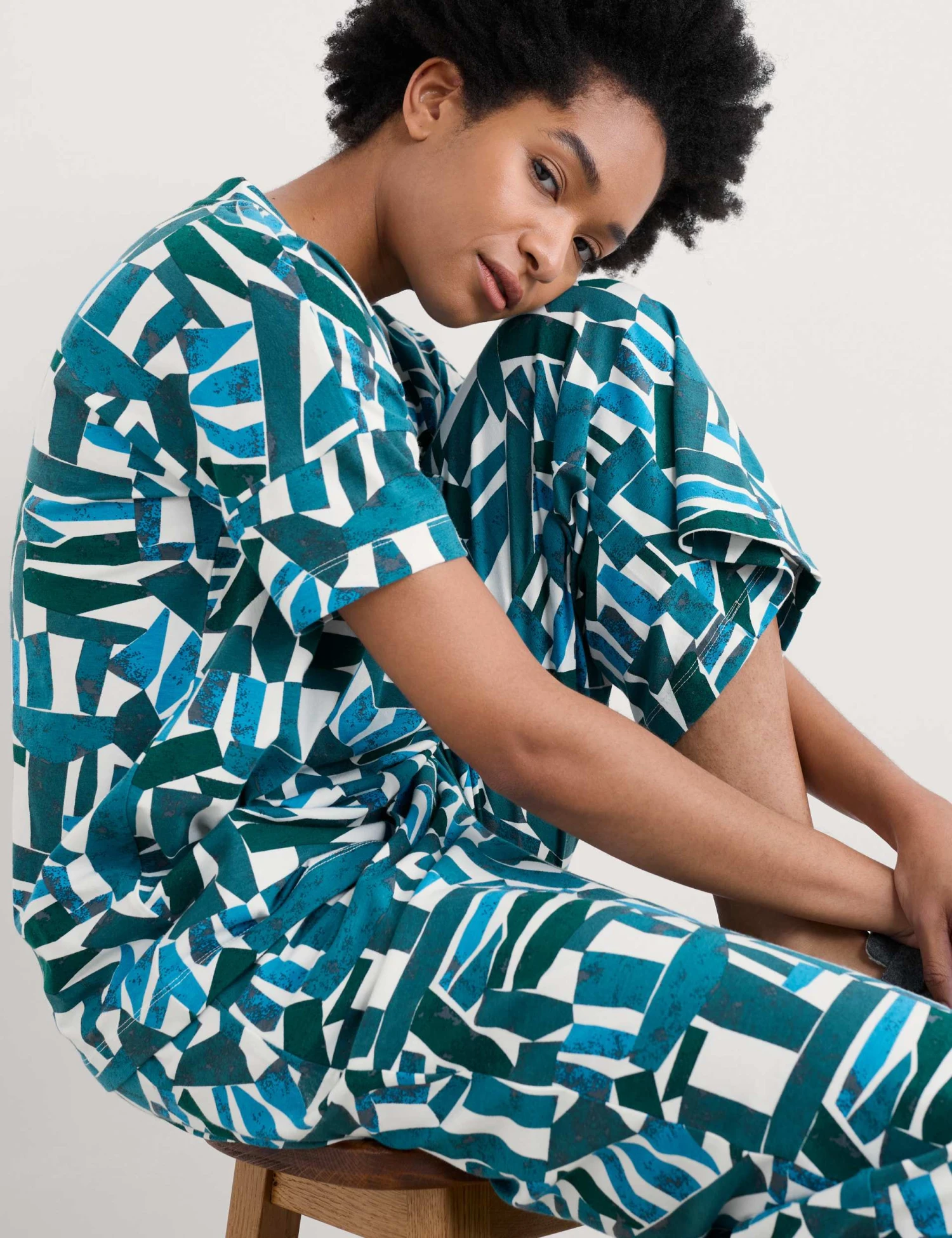 These cotton-rich pyjamas from Seasalt Cornwall feature a striking all-over abstract print. They’re cut to a regular fit for comfort. The set includes a short-sleeved top with a patch pocket on the chest. The coordinating cropped bottoms have a stretchy elasticated waistband, plus an adjustable drawstring fastening.