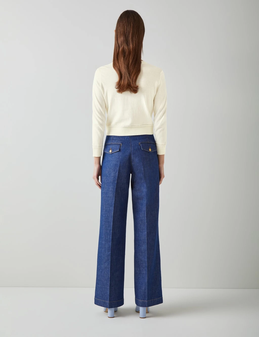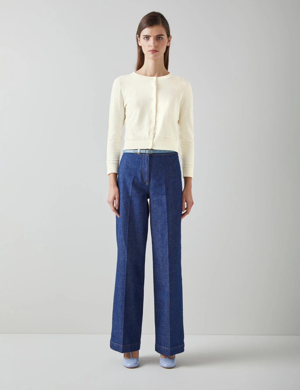 This soft cotton-rich cardigan from LK Bennett is an ideal layering piece for the warmer seasons. The lightweight style is made to a regular fit, with a classic crew neckline and contrasting buttons through the front. Ladder trim detailing at the cuffs and hem adds pretty refinement.