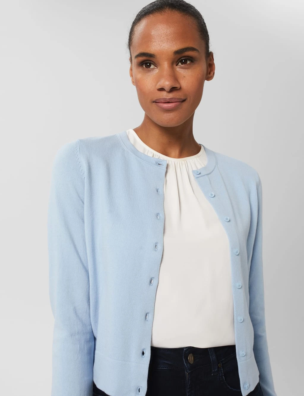 This light cotton-rich cardigan by Hobbs is an elegant way to finish outfits. It has a flattering regular fit, with a classic crew neckline and long sleeves. Small pearlescent buttons through the front lend a dainty touch.