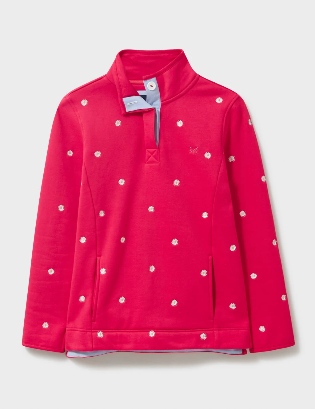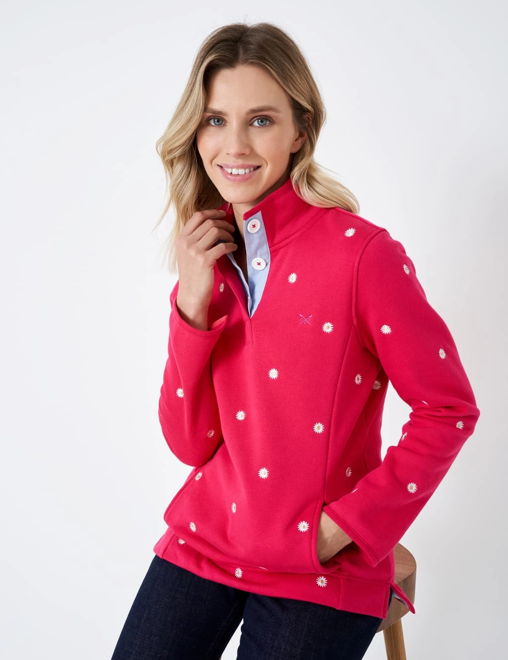 Crafted from cotton-rich fabric with all-over daisy embroidery, this Crew Clothing sweatshirt has a truly cheerful look. It’s made in a comfy regular fit, with a cosy funnel neck and contrasting buttoned placket. Side pockets give room for essentials, while the embroidered crossed oars logo at the chest and chunky branded buttons add signature touches.