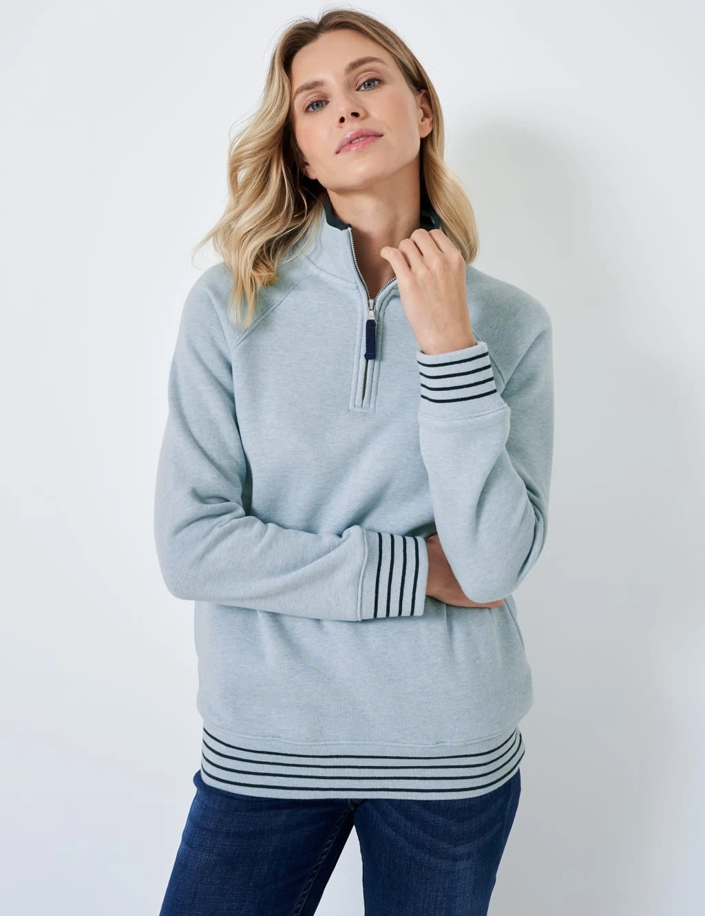 Choose this cotton-rich marl sweatshirt from Crew Clothing for a cosy layer on cooler days. It’s made in a comfy regular fit from garment-washed cotton, for extra softness. There’s a snug funnel neck with a versatile half-zip closure so you can style it your way. The inner collar, cuffs and hem are ribbed, with striped trims offering a statement touch. This versatile piece is complete with a branded zip pull and signature crossed-oars embroidery on the chest.