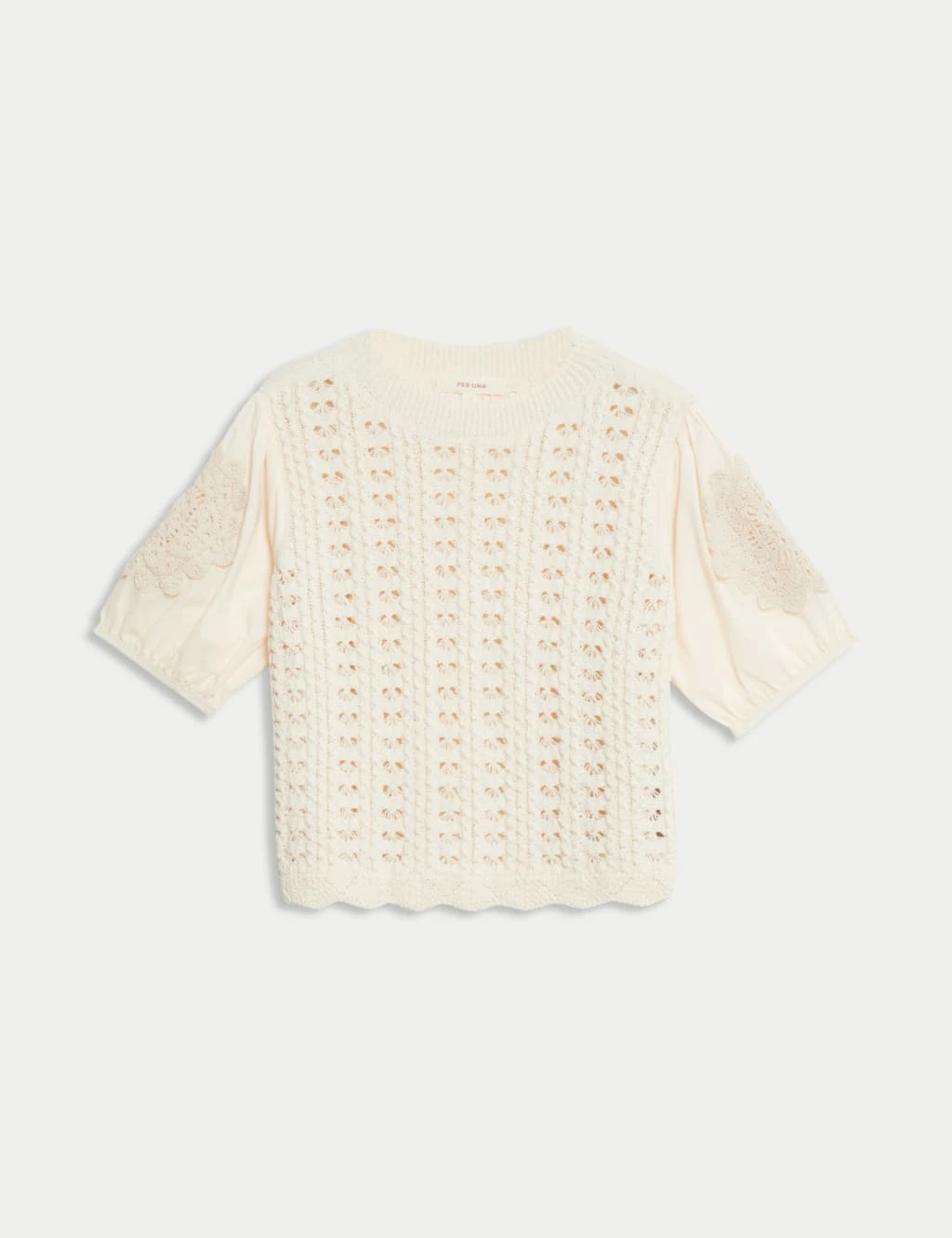 This cotton-rich jumper from our Per Una collection is ideal for those in-between days. It’s designed in a regular fit, with a timeless crew neckline and airy short sleeves. The woven front features intricate crochet detailing for a boho-inspired look. Per Una: stylish designs crafted with carefully considered details and feminine flourishes.