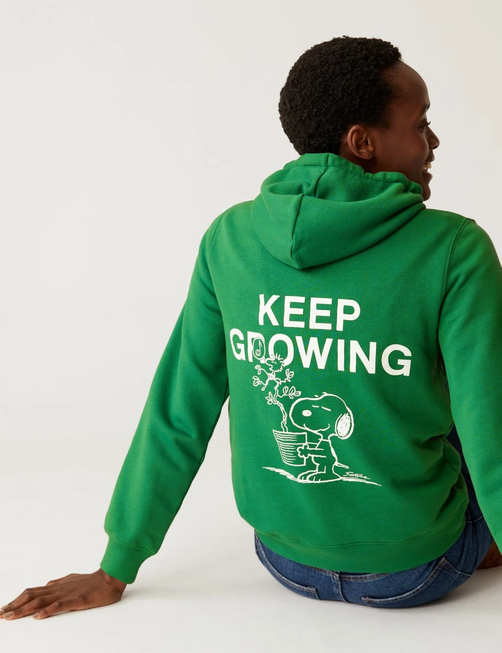 Stay snug in this cotton-rich hoodie with a cosy brushback texture. It comes in a regular fit and features Snoopy™ graphics on the back and chest for a fun finish. We only ever use responsibly sourced cotton for our clothes.