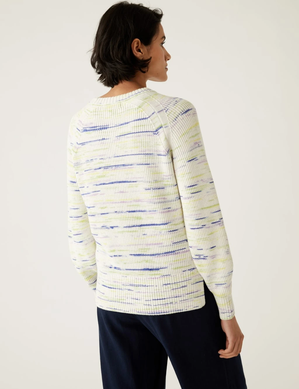 Add a colourful pop to your outfit with this cotton-rich space-dyed jumper. It’s designed in a comfy regular fit with raglan sleeves and a classic crew neckline. Ribbing adds a traditional textured finish.