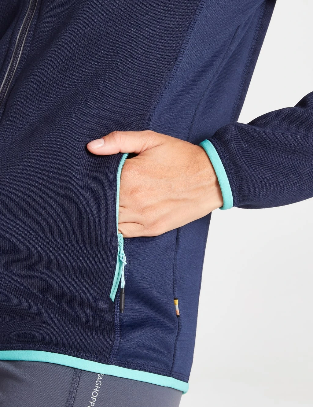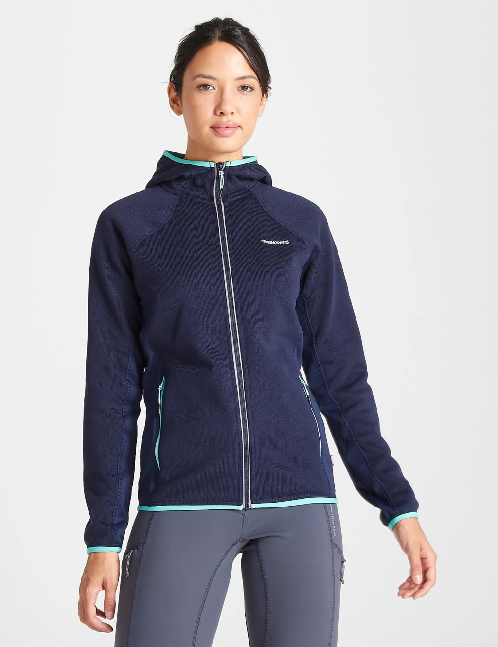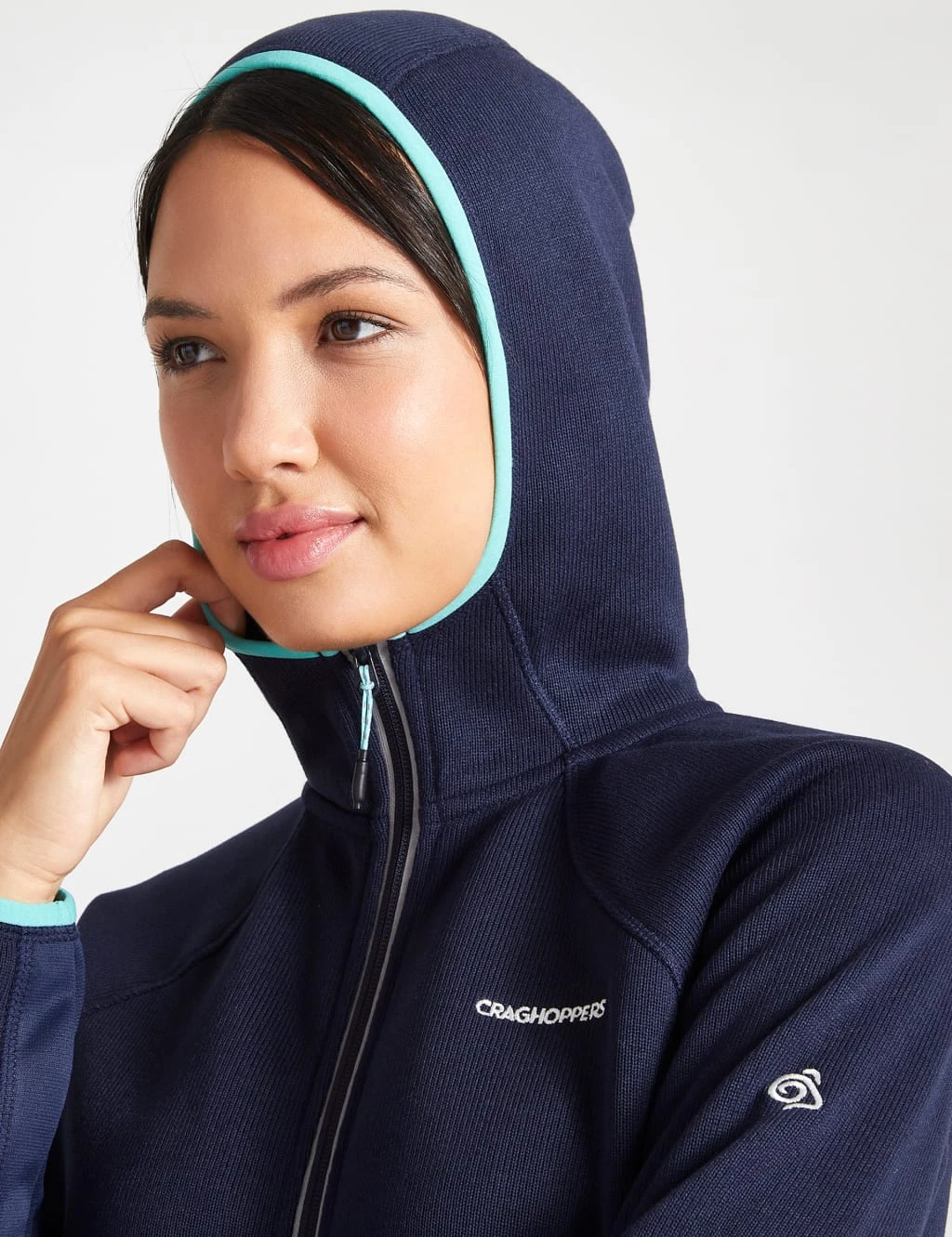 Stay warm and protected during outdoor adventures in this zip-up knitted hoodie from Craghoppers. It’s made in a regular fit, with elasticated trims at the cuffs, hems and hood to lock in warmth. It has a high funnel neck to keep out draughts, plus stretch panels that ensure plenty of freedom to move. Two zipped pockets keep your essentials secure, and reflective details give extra visibility. This product from Craghoppers is part of The Duke of Edinburgh’s Award recommended kit.