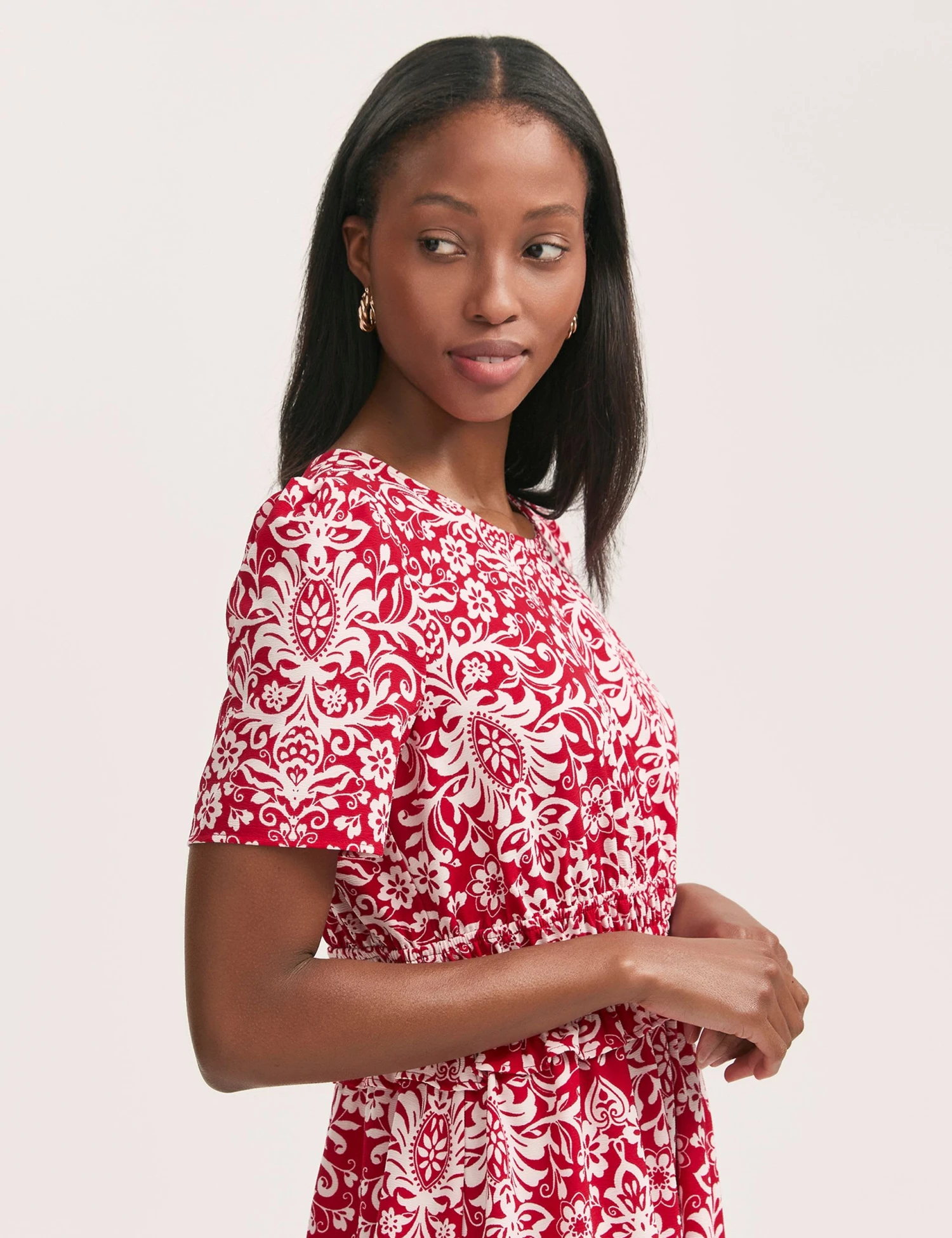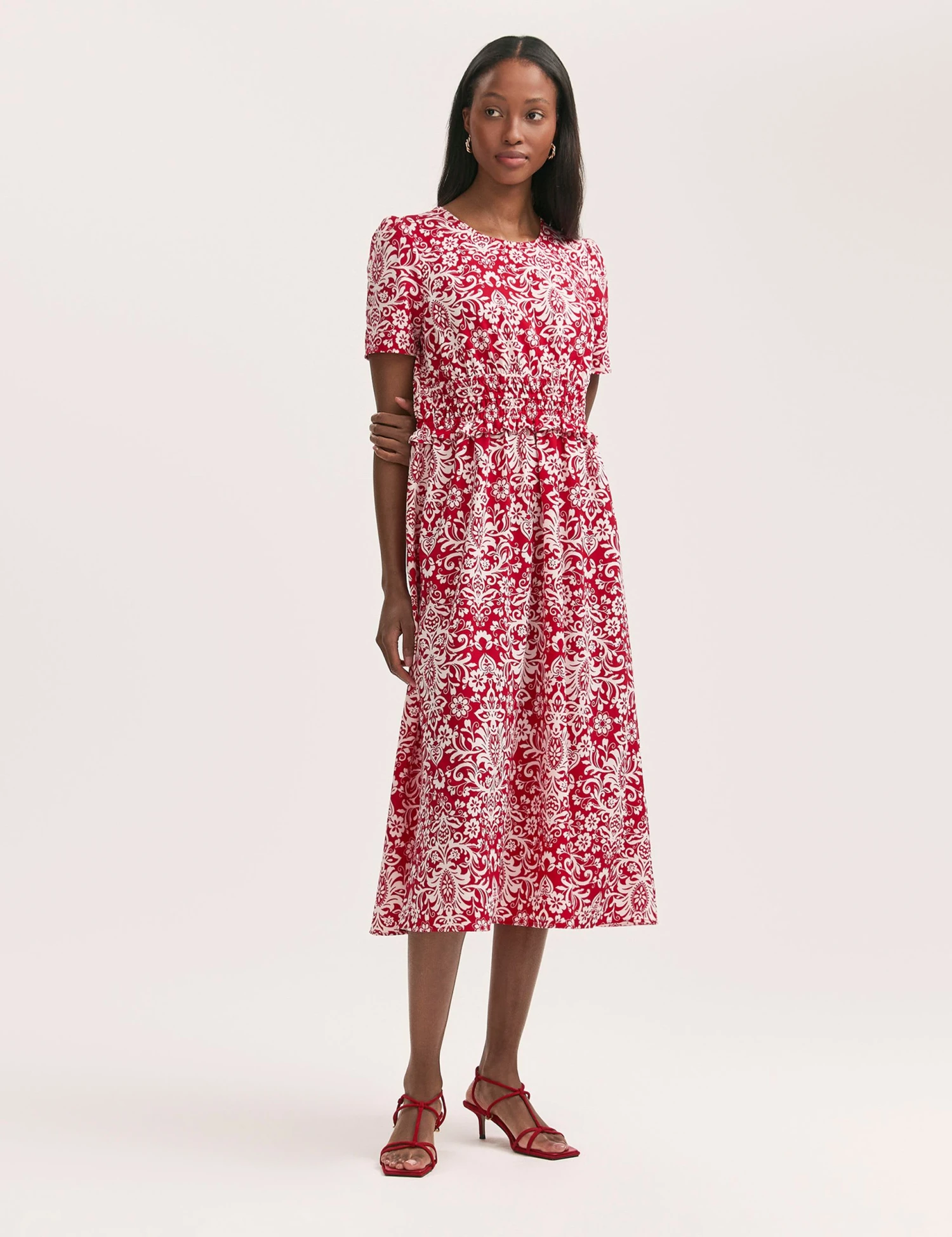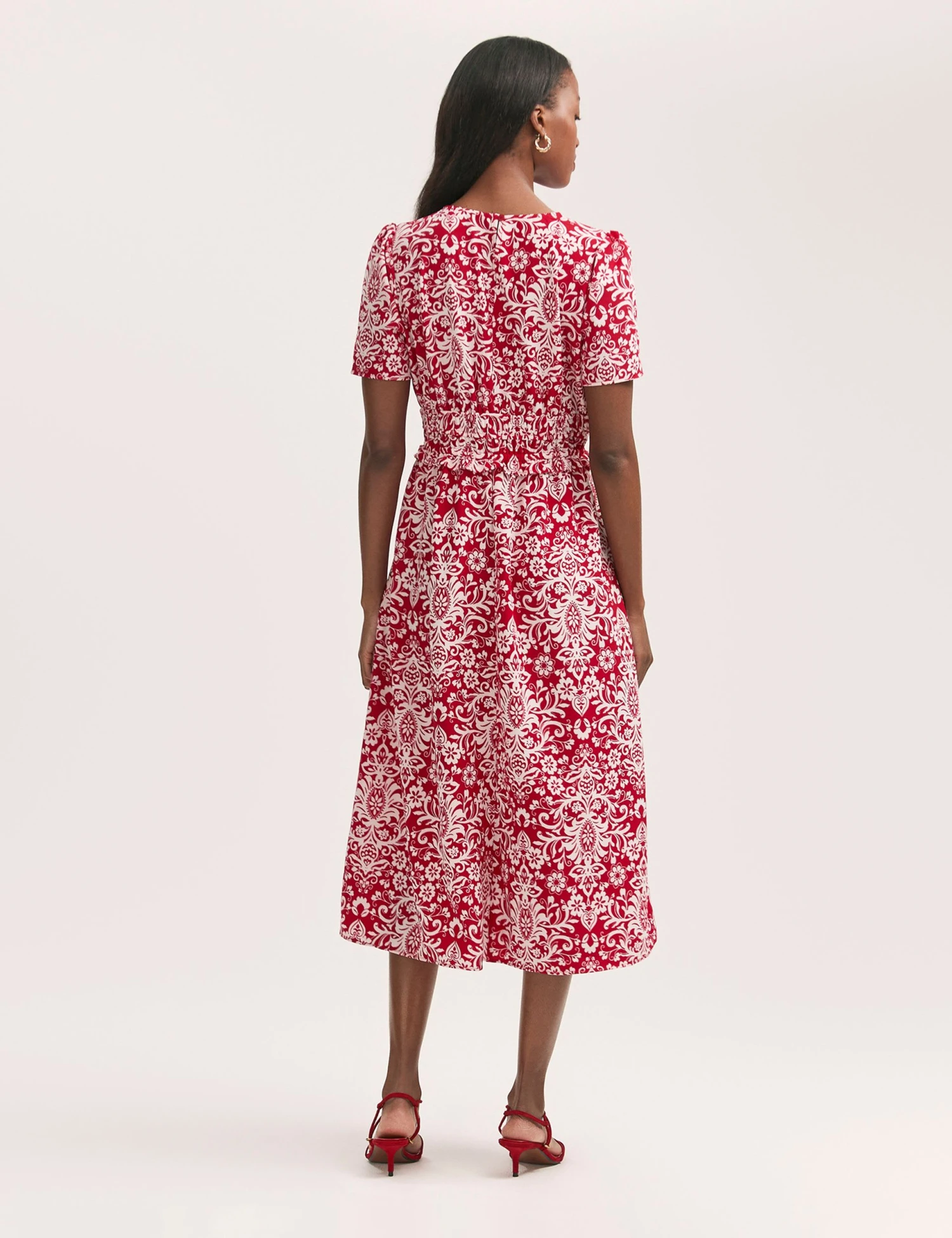 This crepe tea dress from Finery London is a versatile piece that will take you from work to weekend. It’s cut in a comfy regular fit, with shirring at the waist to create a flattering silhouette. Short puff sleeves and a crew neckline add a neat look. The skirt falls to an elegant midi length.