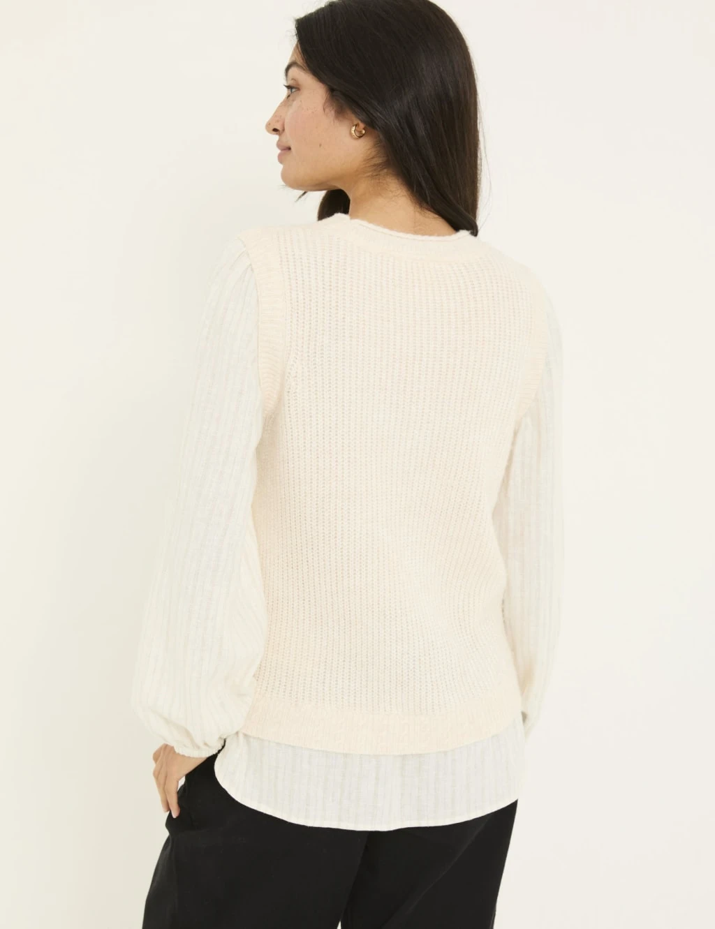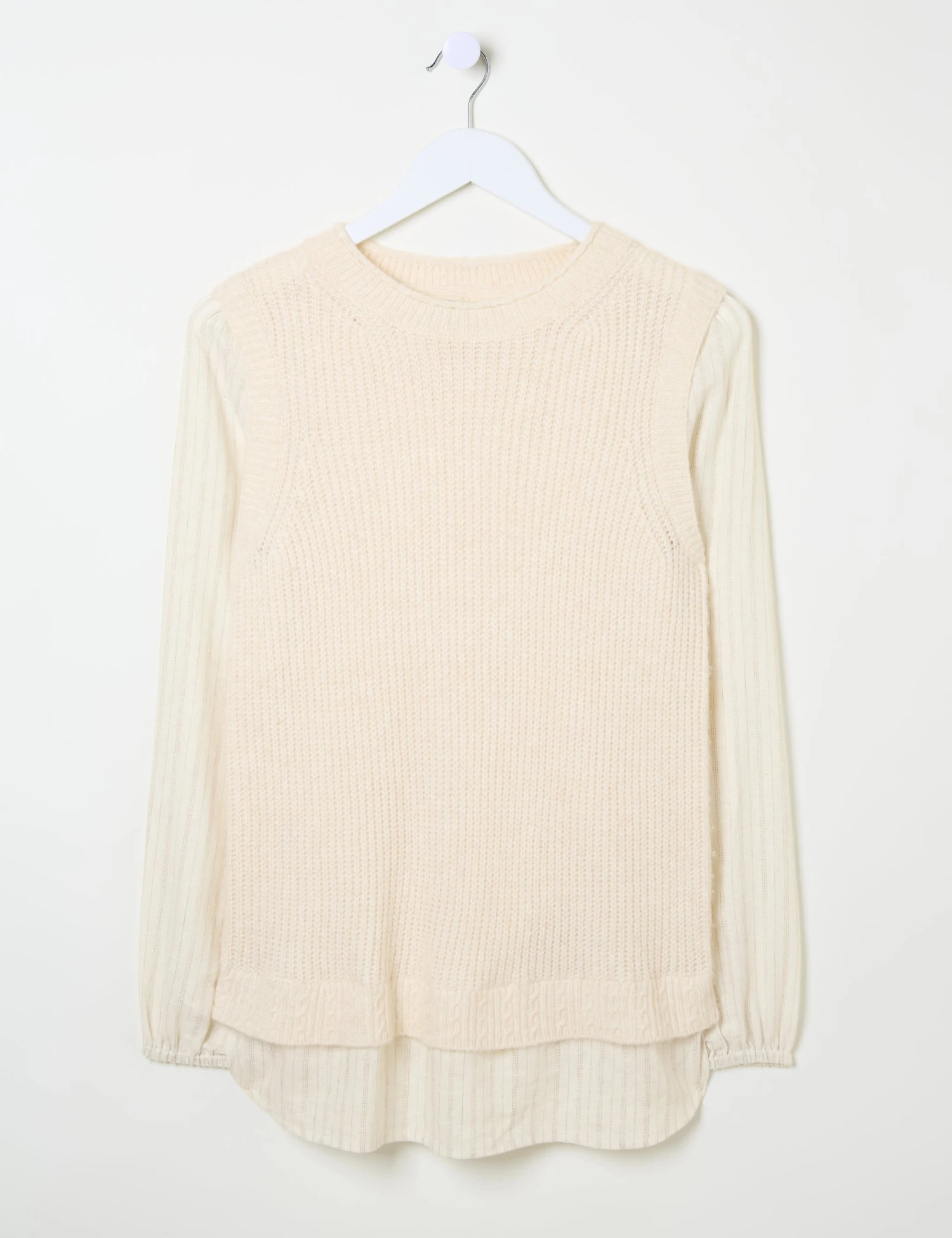This 2-in-1 knitted top from FatFace creates an effortlessly layered look. It’s designed in a regular fit, with a neat crew neckline. The main body is a cosy knitted vest, while the lightweight underlayer is complete with long blouson sleeves for an elegant silhouette.