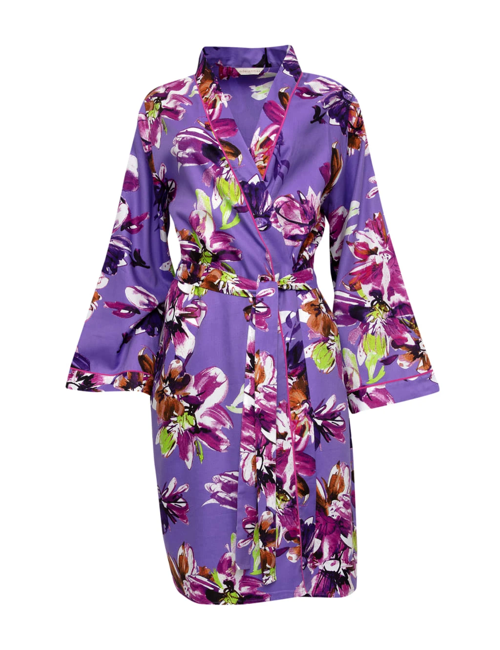 A soft cotton-modal blend gives an irresistibly comfy feel to this kimono-style short dressing gown by Cyberjammies. It’s cut to a regular fit, with a matching tie belt and loose long sleeves. The vibrant floral print is complemented by piped trim along the wrap front and above the cuffs. Side pockets add the finishing touch.