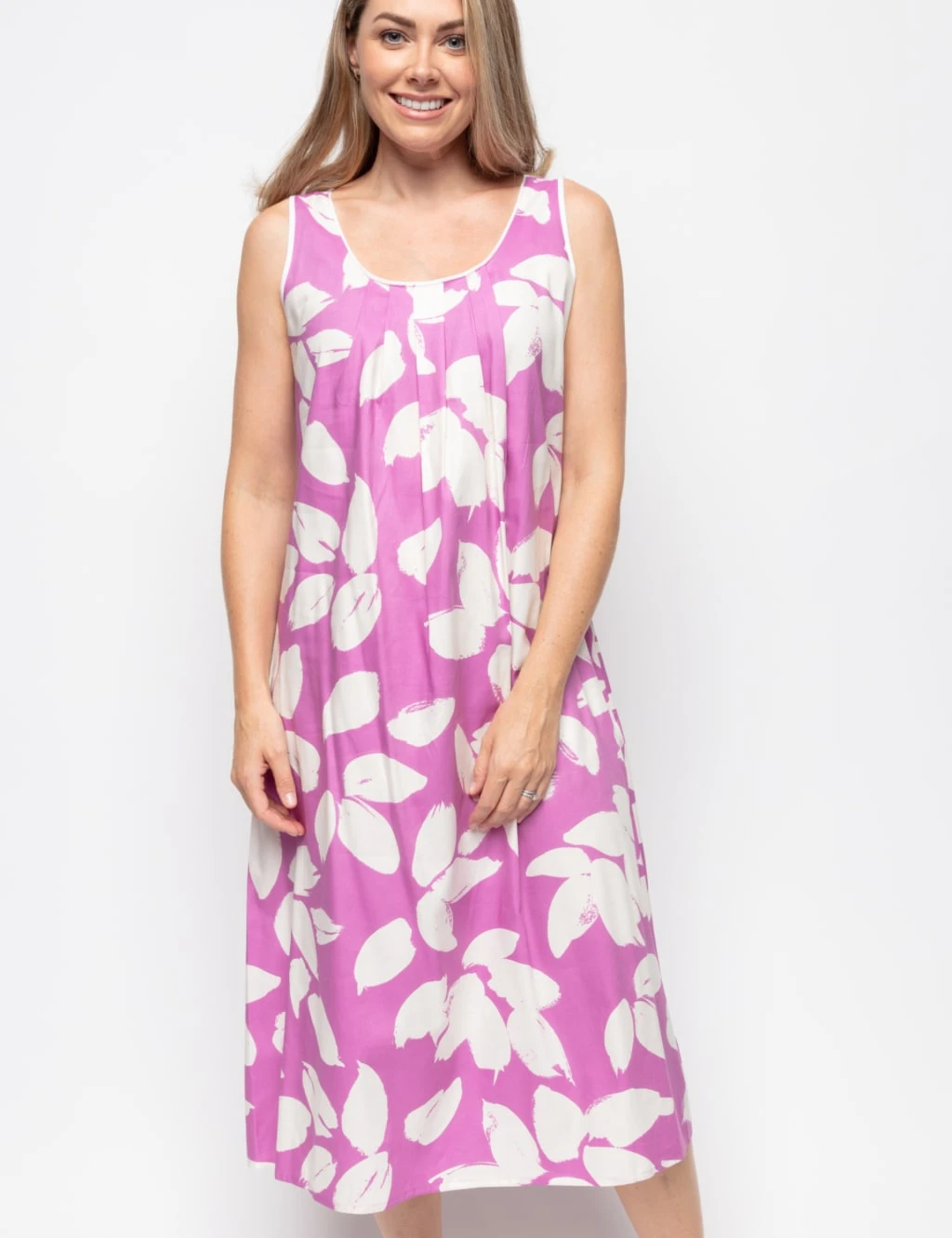 This long nightdress from Cyberjammies is cut from flowing cotton-modal fabric that feels gentle and cool to wear. This sleeveless style is made in a comfy regular fit. A statement leaf print gives a stand-out look.