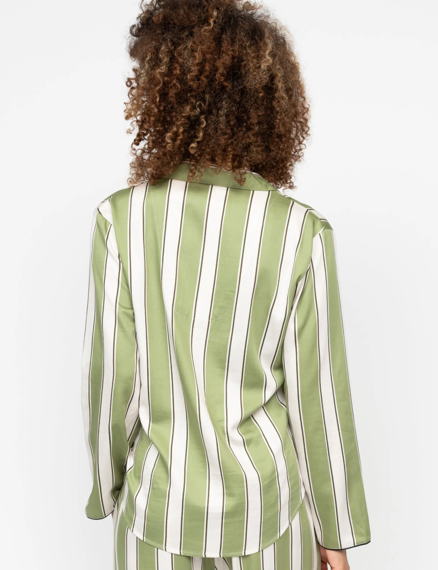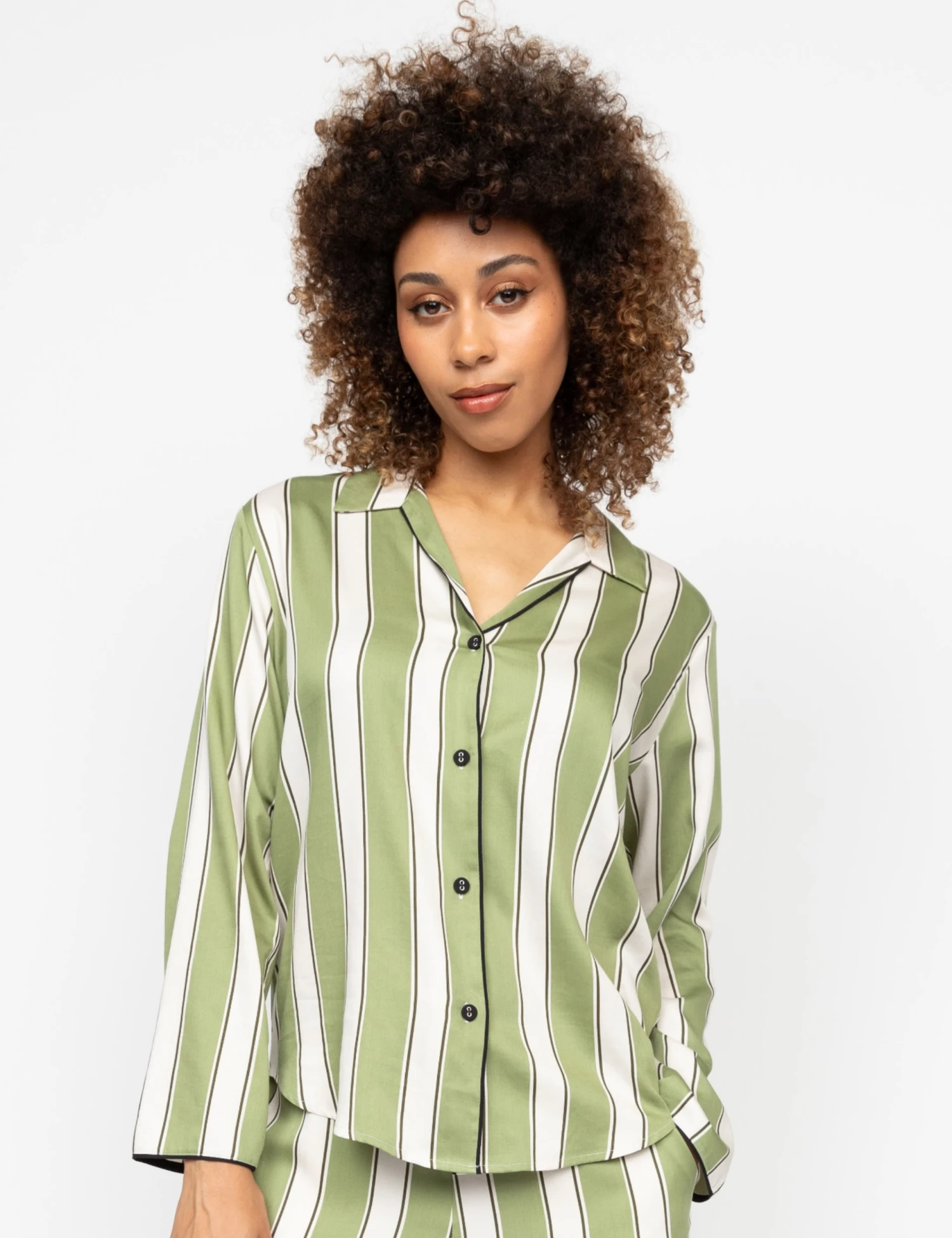 This stylish Cyberjammies pyjama top is crafted from a cotton-modal blend for a luxuriously soft feel. The long-sleeved piece is cut in a comfy regular fit, with a smart collar and covered buttons through the front. Crisp stripes create a timeless look, while contrast trims provide a sophisticated finish.