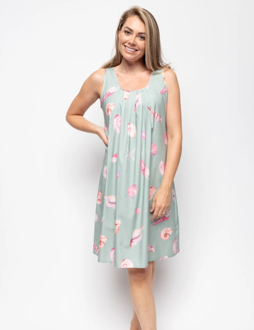 Add a classic look to your sleepwear with this short cotton-rich chemise from Cyberjammies. This sleeveless design has a flattering scoop neck with wide shoulder straps. Pleats at the front add shape to the silhouette, while the all-over shell print brings a playful feel.