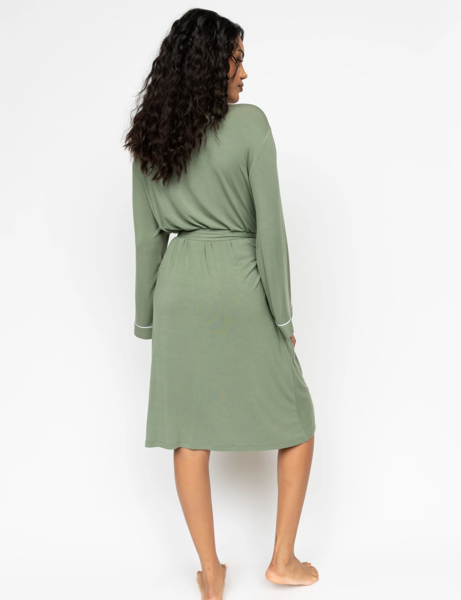 Bring a luxurious feel to your lounging with this modal-rich dressing gown from Cyberjammies. It’s crafted in a comfy regular fit and sits at a short length for a contemporary look. A belt fastening at the waist keeps it secure, while piped trims add an elegant finish.