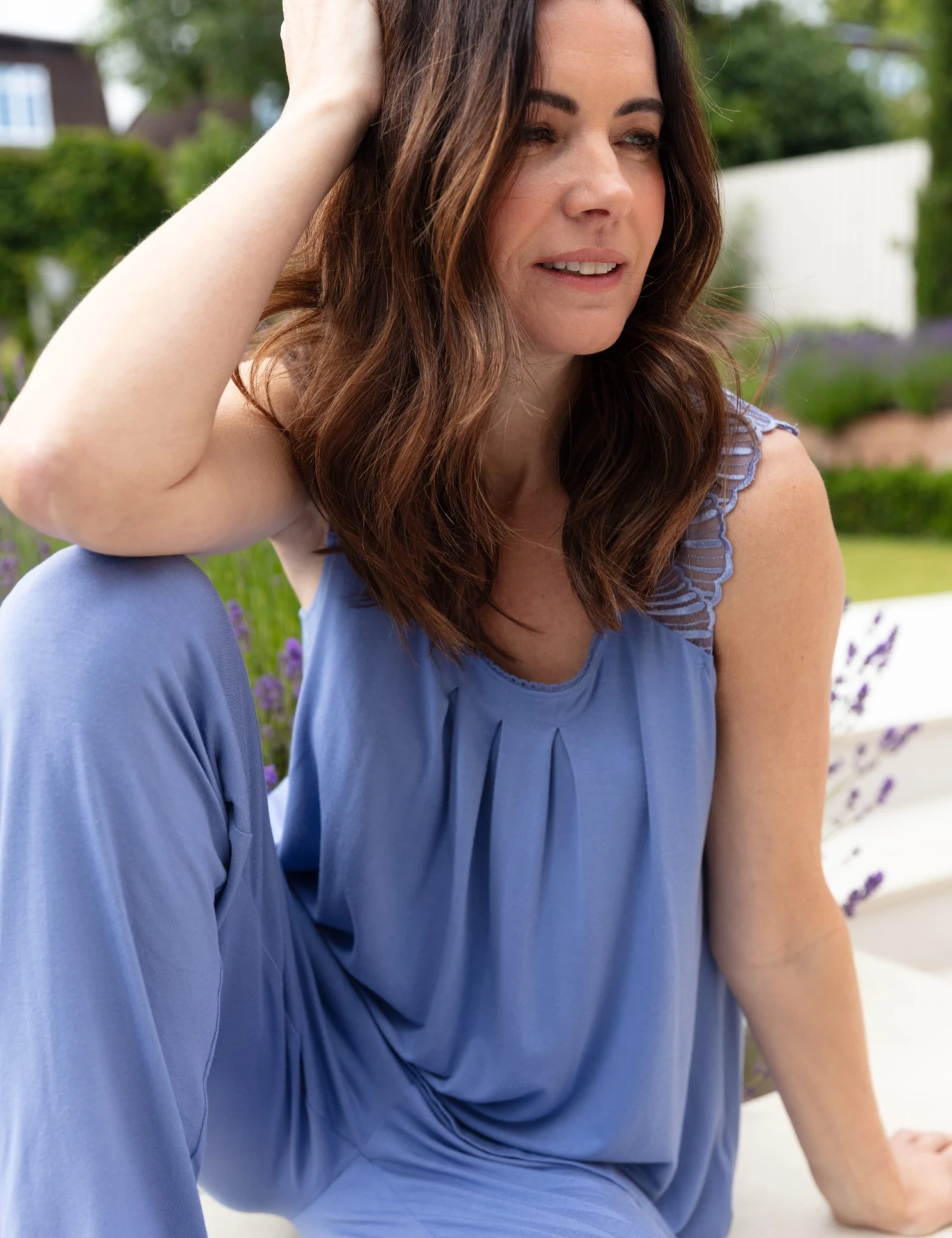 These Cyberjammies pyjamas are crafted from pure modal fabric for a luxurious feel. The regular-fit set includes a sleeveless top, with delicate lace trims on the shoulder straps for a feminine touch. The matching bottoms have a comfortable elasticated waist and are finished with lace trims on the hems.