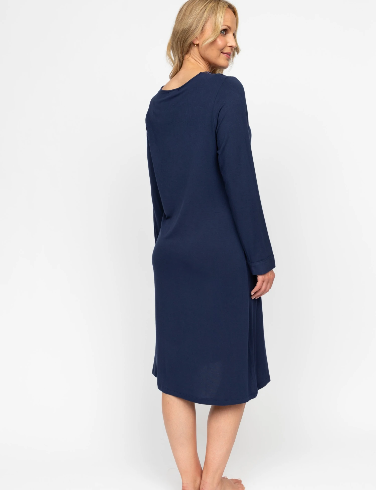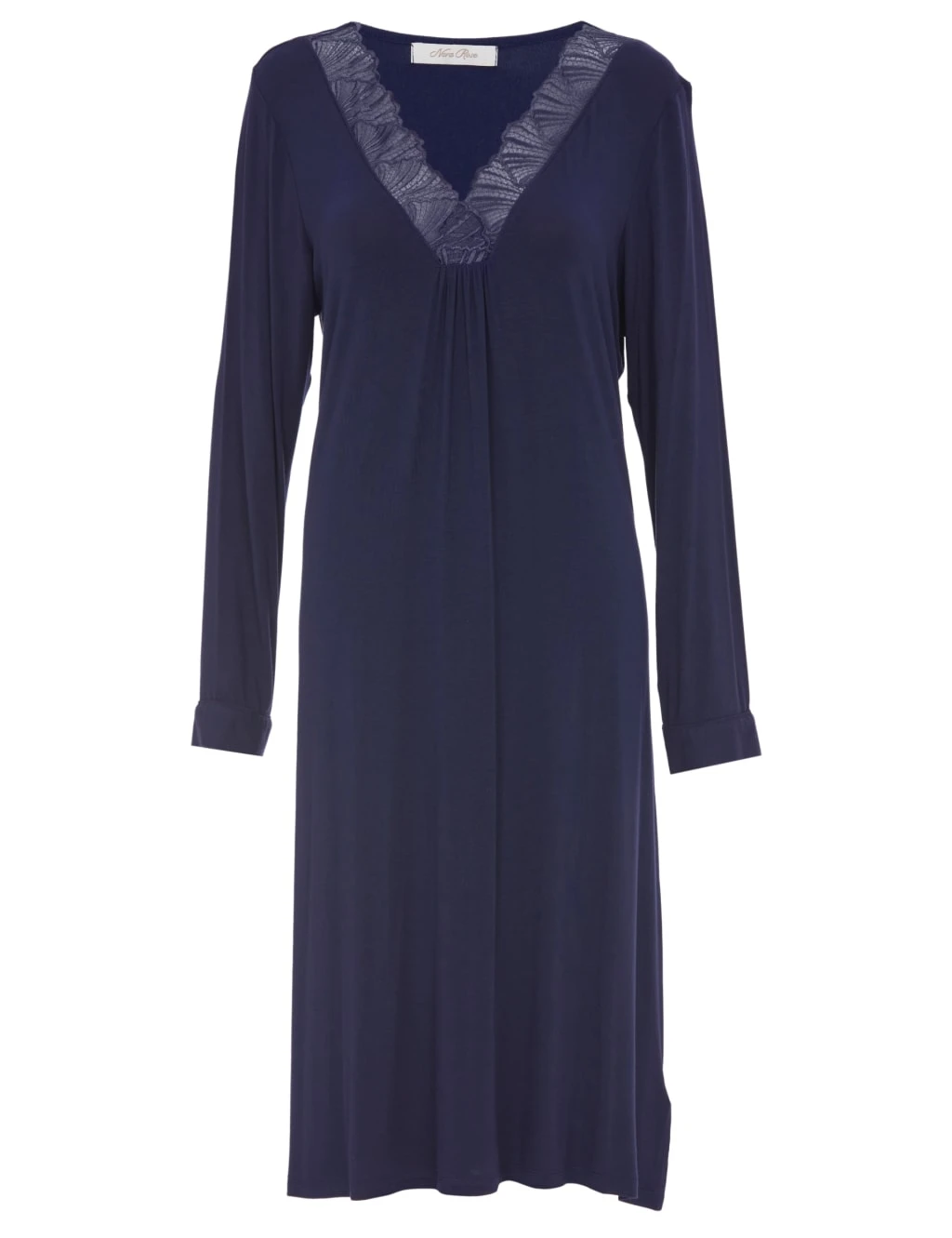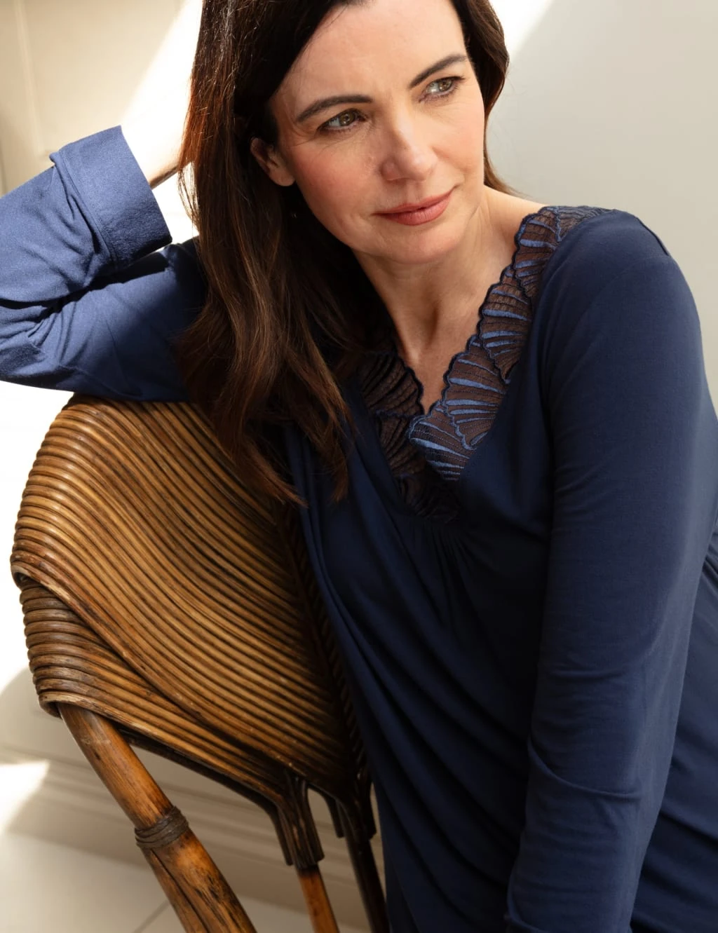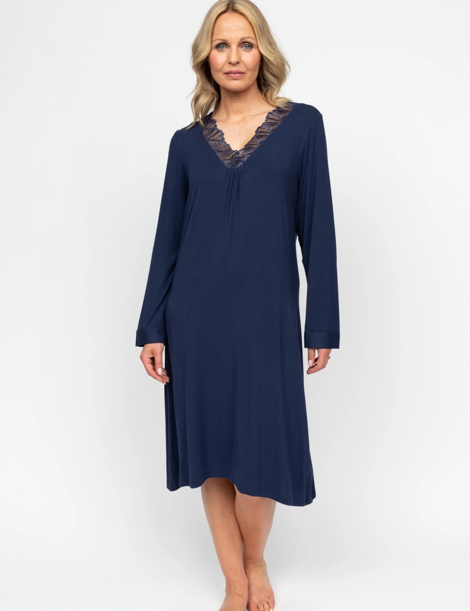 Unwind in style with this slinky nightdress from Cyberjammies. Made from a soft modal-rich fabric, this long design is cut to a regular fit. It features long sleeves, a v-neckline and delicate shell lace for a touch of feminine luxury.