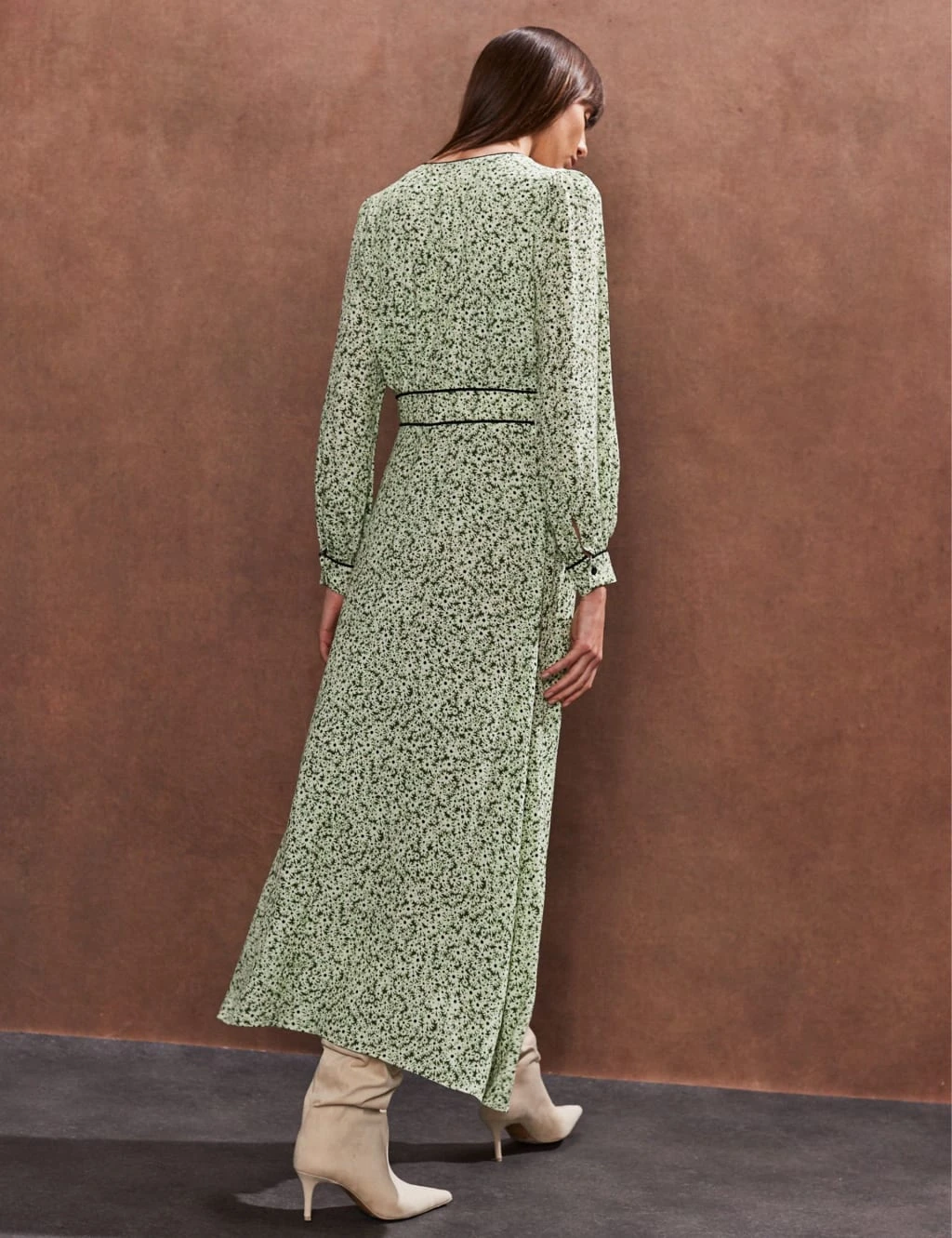 This ditsy floral dress by Ro&Zo is a versatile choice for day or night. It’s designed in a regular fit with a flattering waisted silhouette. A v-neckline and long sleeves create an elegant look, while a midaxi-length hem provides a graceful finish. The piece is complete with a comfortable lining and buttoned cuffs.