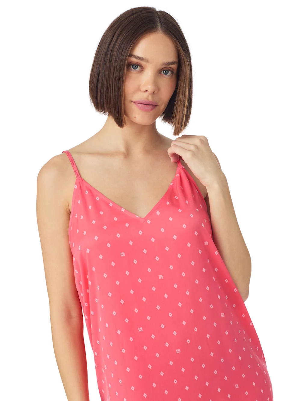 Bring feminine charm to your warm-weather nightwear with this satin chemise from DKNY. It’s made in a regular fit, with a v-neckline and side splits in the short hem. The spaghetti shoulder straps are adjustable for your perfect fit. You’ll spot the brand’s logo amid the micro diamond design.