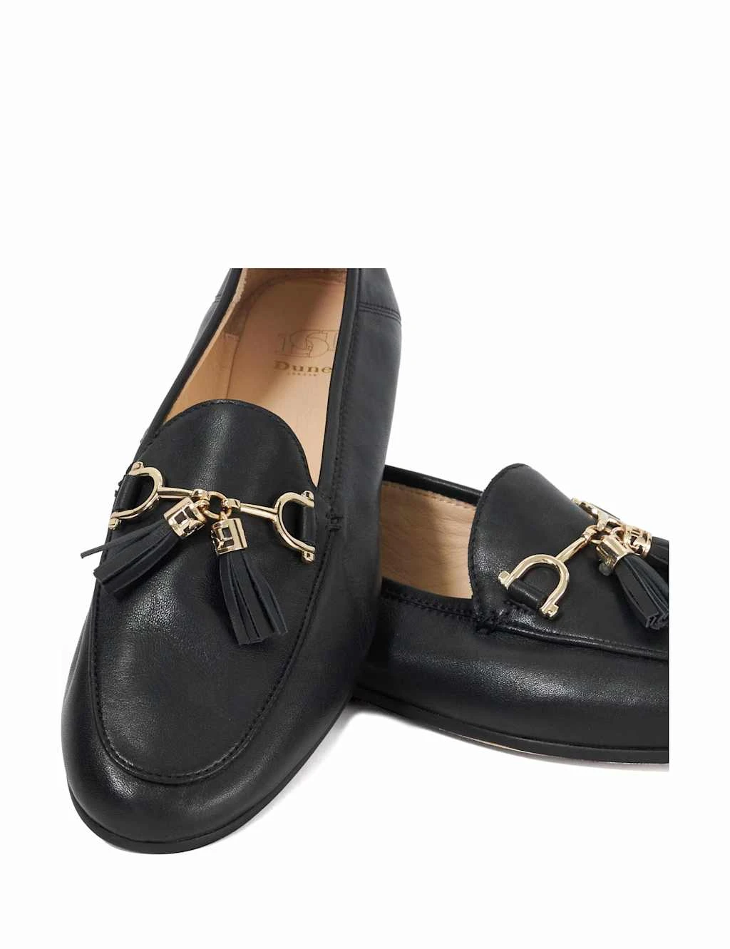 These Dune London loafers take an elegant yet versatile approach to smart footwear. The timeless slip-on design is made from sleek leather, and sits on a veneer-wooden flat sole to enhance the premium feel. Tassel-finished snaffle hardware completes the look with traditional, equestrian-inspired detail.
