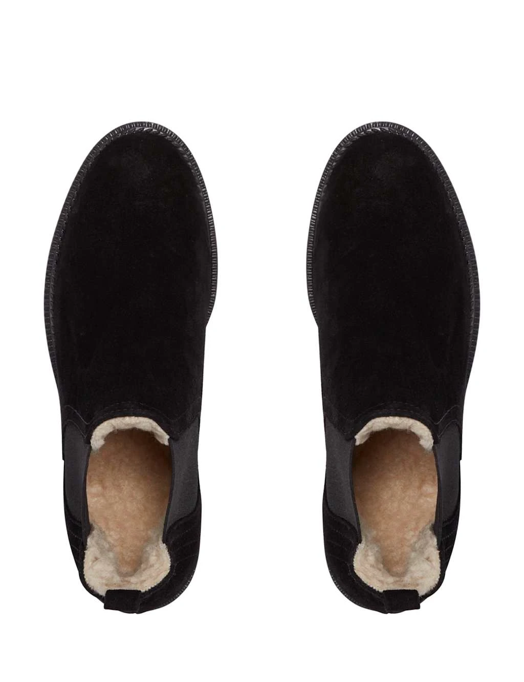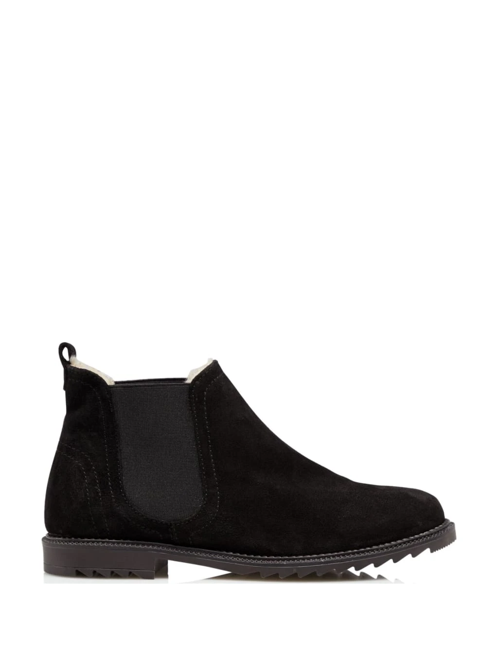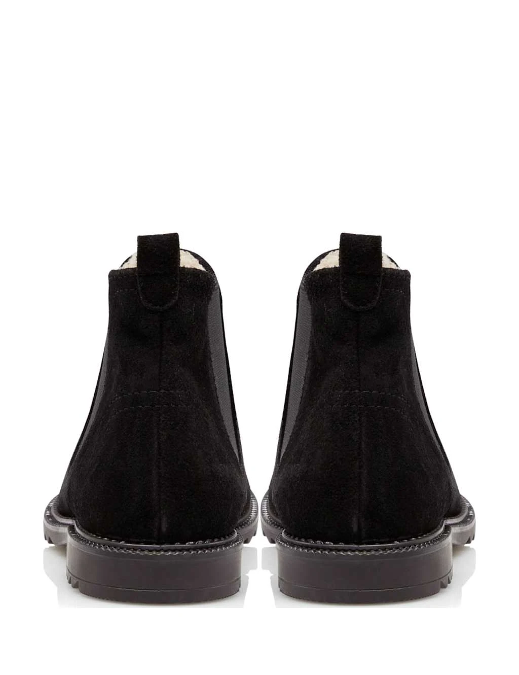 With a sumptuous faux shearling lining, these suede boots by Dune bring a cosy twist to the classic Chelsea style. They have a cropped height for a contemporary look and a practical flat heel. Traditional elasticated side panels and pull-on loops finish the design.