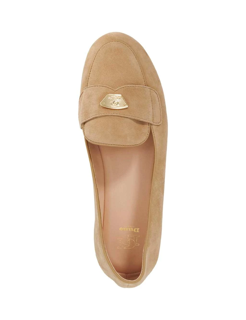 These soft suede loafers by Dune London are a smart-casual essential. The slip-on design features traditional rounded toes and flat soles for comfortable wear. A metal trim on the front is embossed with the brand’s logo for a luxe finishing touch.