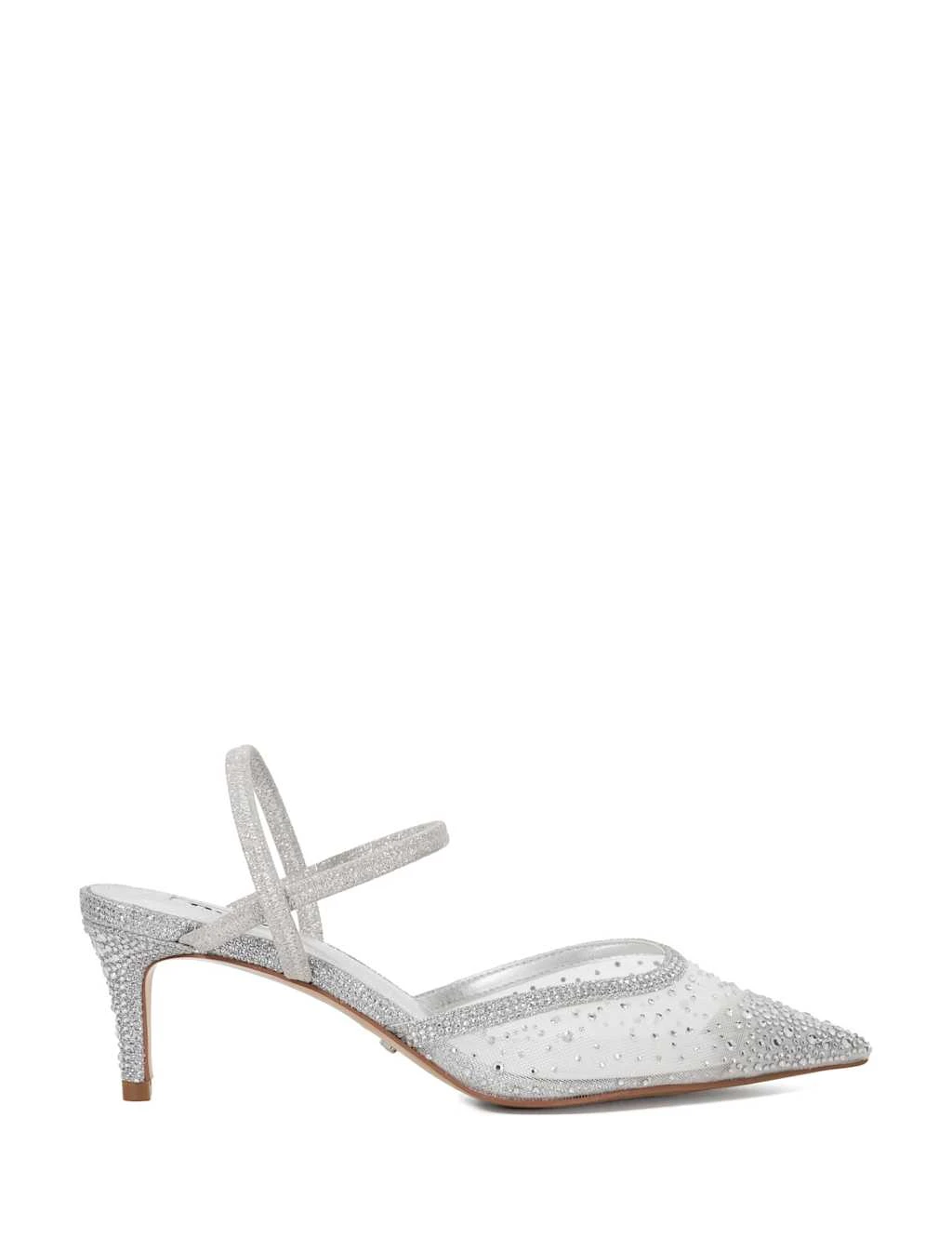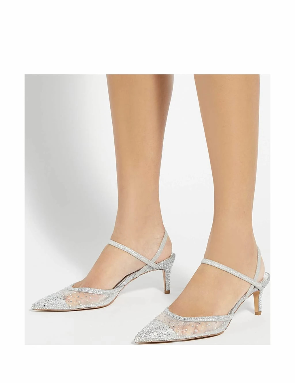 With their glittery design, these Dune London slingback shoes bring shimmer and sparkle to your ensemble. They’re made in a wide fit for comfort and feature a sleek mid-height stiletto heel. A timeless pointed toe completes the look.