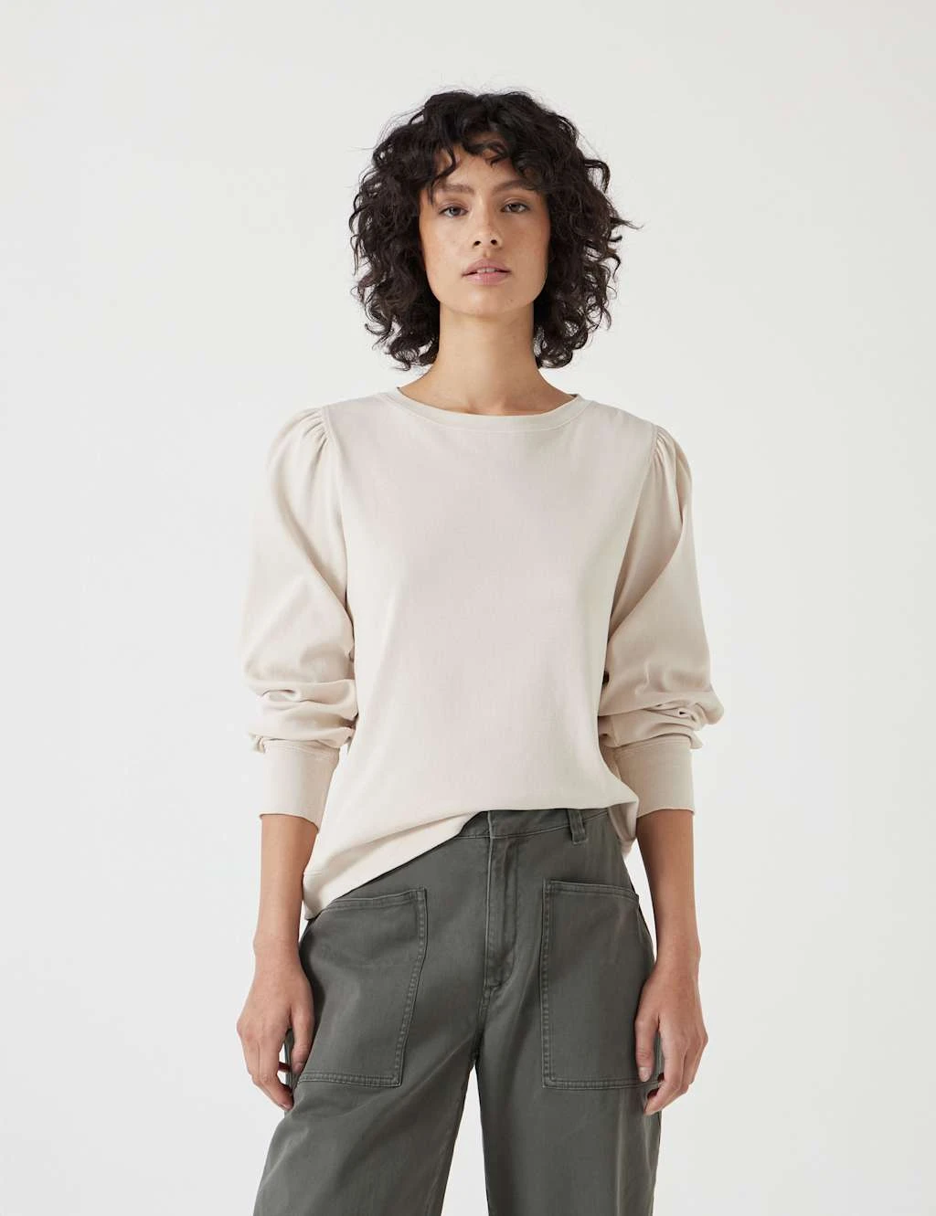 This hush sweatshirt is crafted from pure cotton jersey for a luxe take on a casualwear essential. It’s cut in a regular fit, with a neat crew neckline. The long sleeves are puffed, adding a feminine flourish to the design.