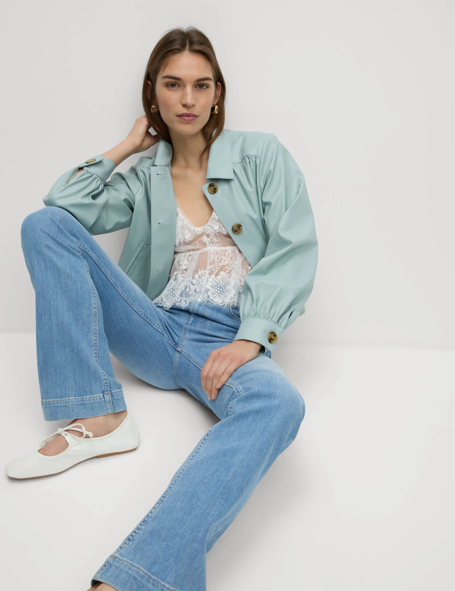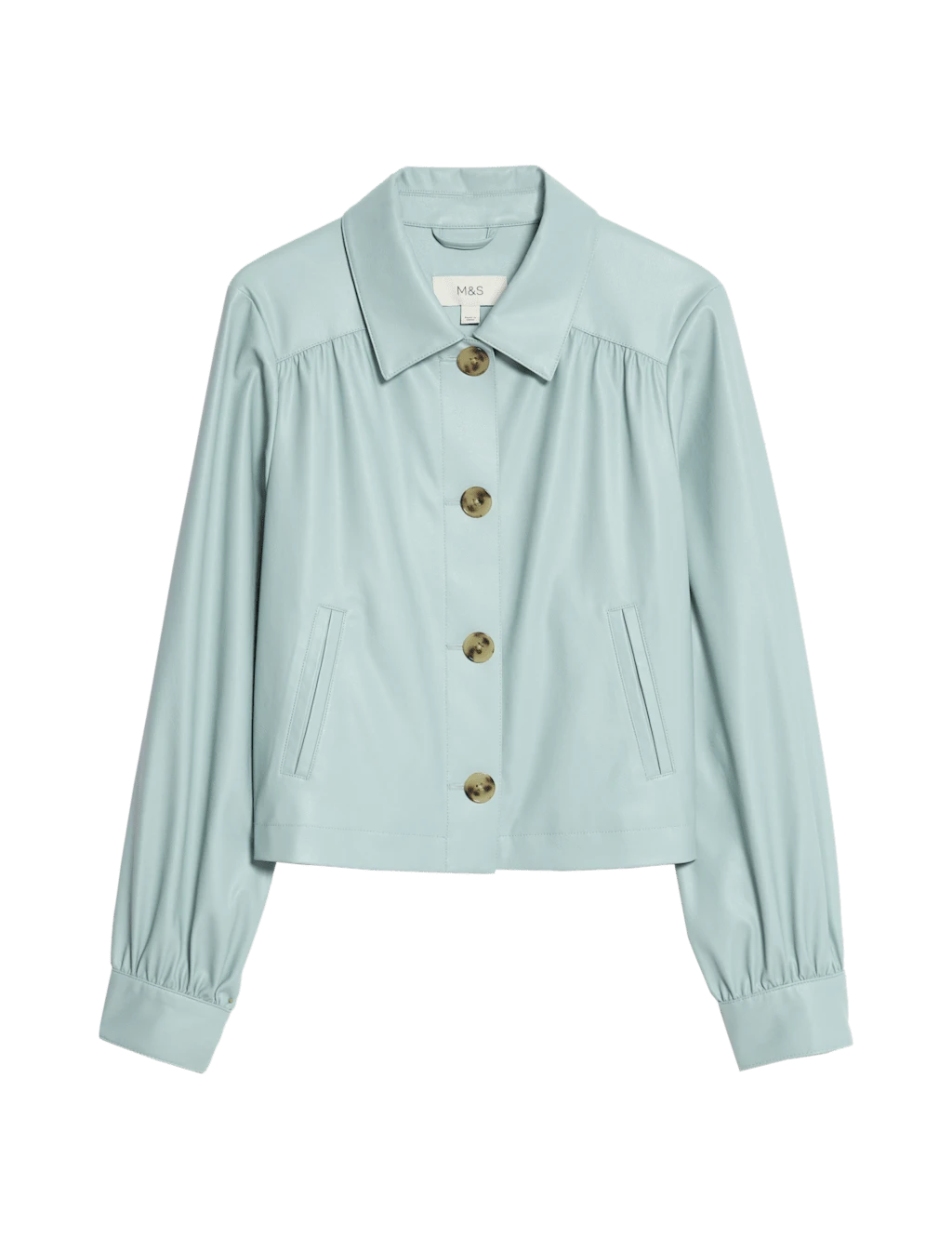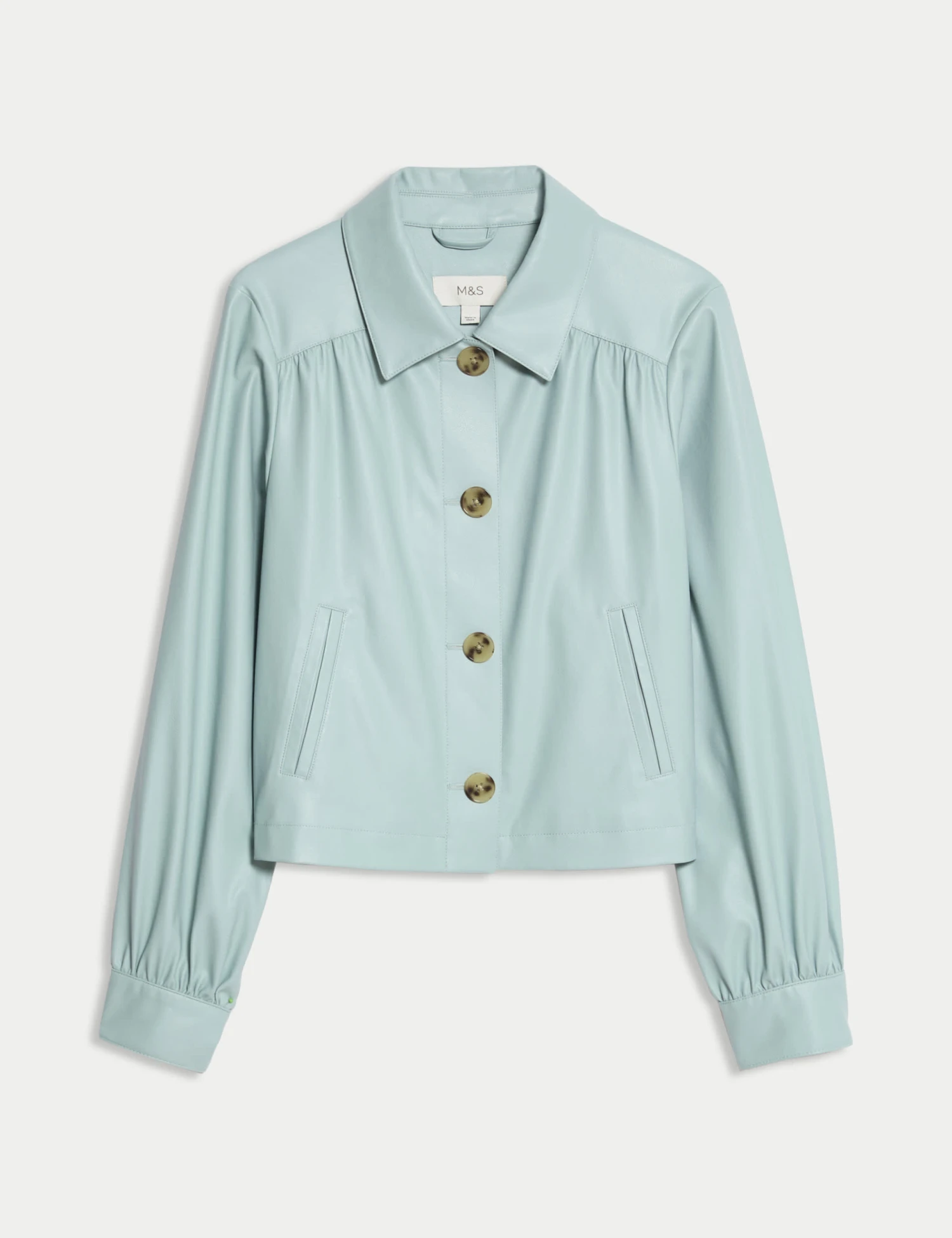 Add an edge to your outfit with this stylish and versatile faux leather jacket. It’s cut in a regular fit with a cropped length for a flattering silhouette. A collared neckline, button-through front and handy side pockets create a timeless look, while gathered details at the cuffs and shoulders add a touch of elegance. M&S Collection: easy-to-wear wardrobe staples that combine classic and contemporary styles.