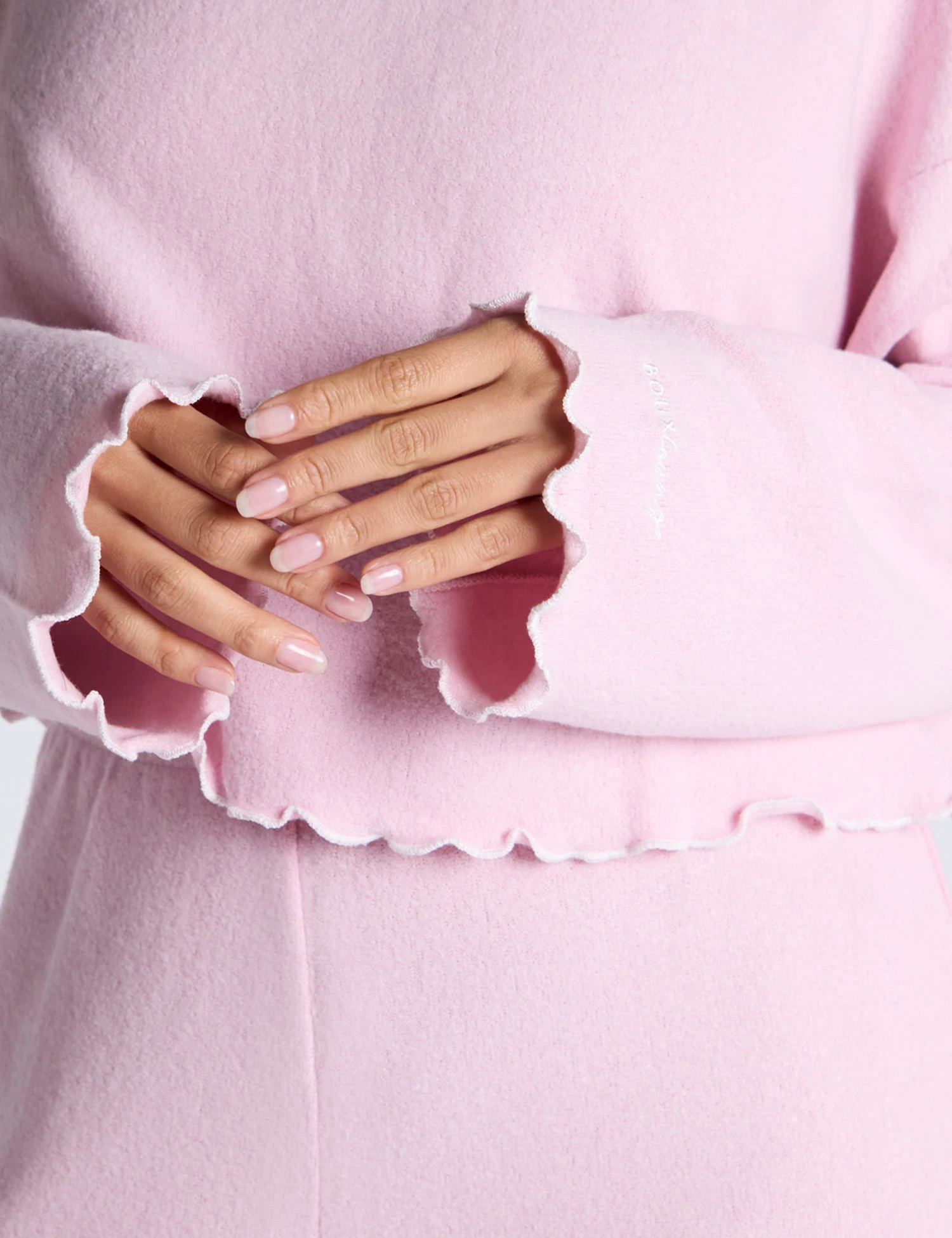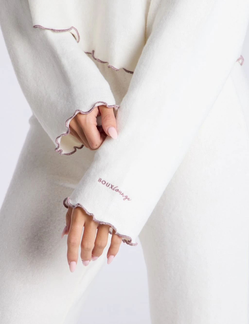This Boux Avenue pyjama set is made from cosy fleece for a super-snuggly feel. Designed in a regular fit, it includes a long-sleeved top and matching full-length bottoms. Both pieces feature a cute lettuce trim for a dainty touch.