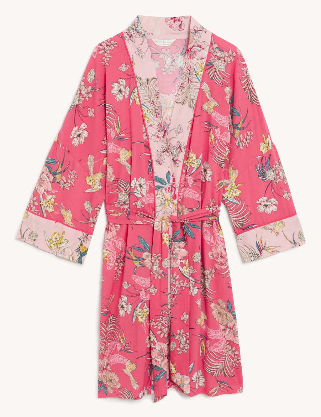 Bring a bright feel to those laid-back mornings with this lightweight wrap, featuring a pretty floral print. Comfortable regular fit design in a flattering short length. Features a classic detachable belt fastening to help keep you cosy.