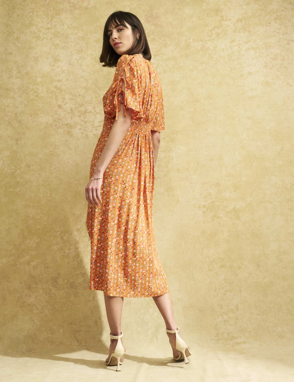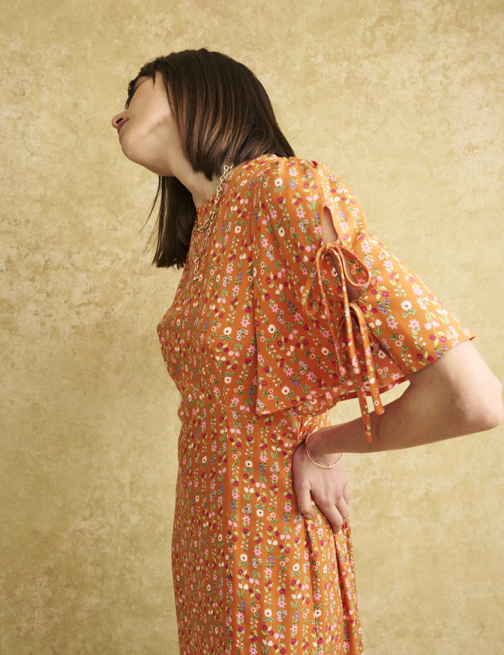 For effortless elegance, choose this floral tea dress from Nobody’s Child. It’s cut in an easy relaxed fit, with a crew neckline and pretty tie detail at the short sleeves. A shirred panel at the back creates a flattering silhouette, while a split adds a statement finish to the midi-length skirt.