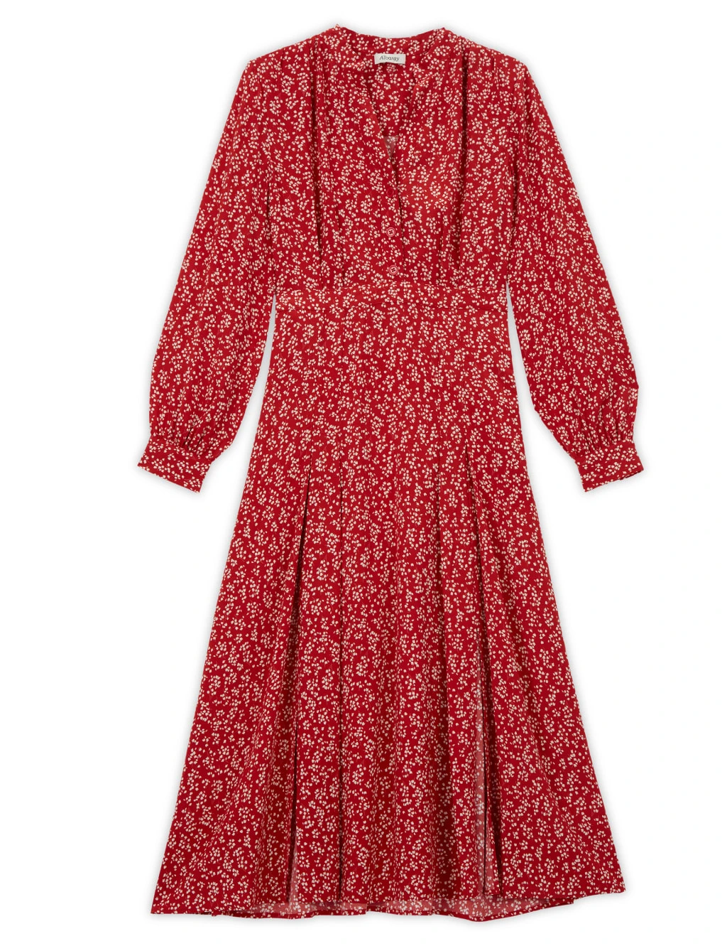 Bring a fresh feel to your wardrobe with this floral tea dress from Albaray. The v-neck design is cut to an easy regular fit with a front button fastening and gently full sleeves. Gathers through the bodice create a feminine silhouette, while pleats and side splits add extra movement to the midi-length skirt.