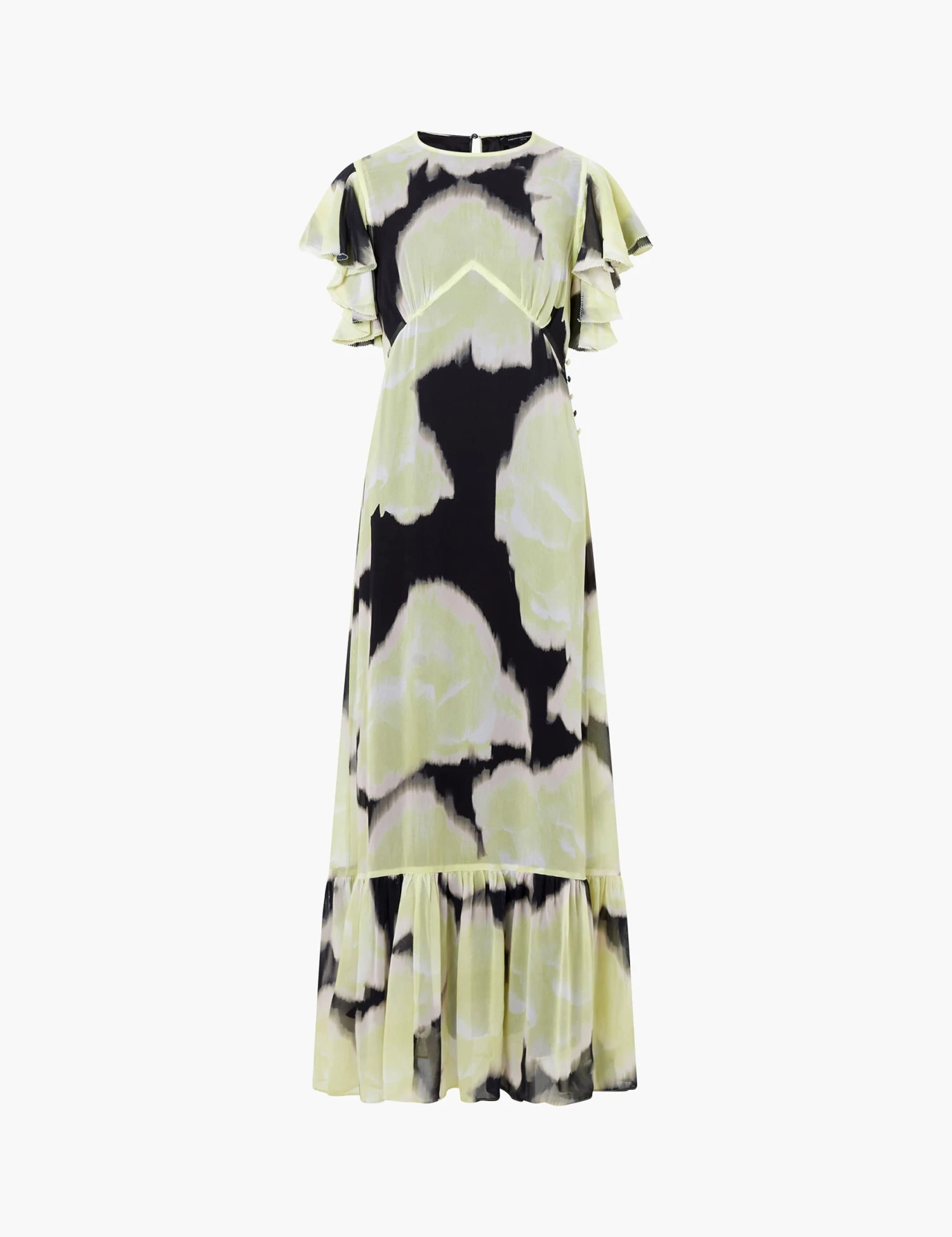 This French Connection dress is crafted from elegant chiffon for a gorgeously floaty effect. It’s designed in an easy regular fit with a feminine crew neck. The frilly short sleeves and tiered maxi-length hem provide graceful touches. An abstract print provides a standout look, while a keyhole button fastening at the back adds a neat finish.