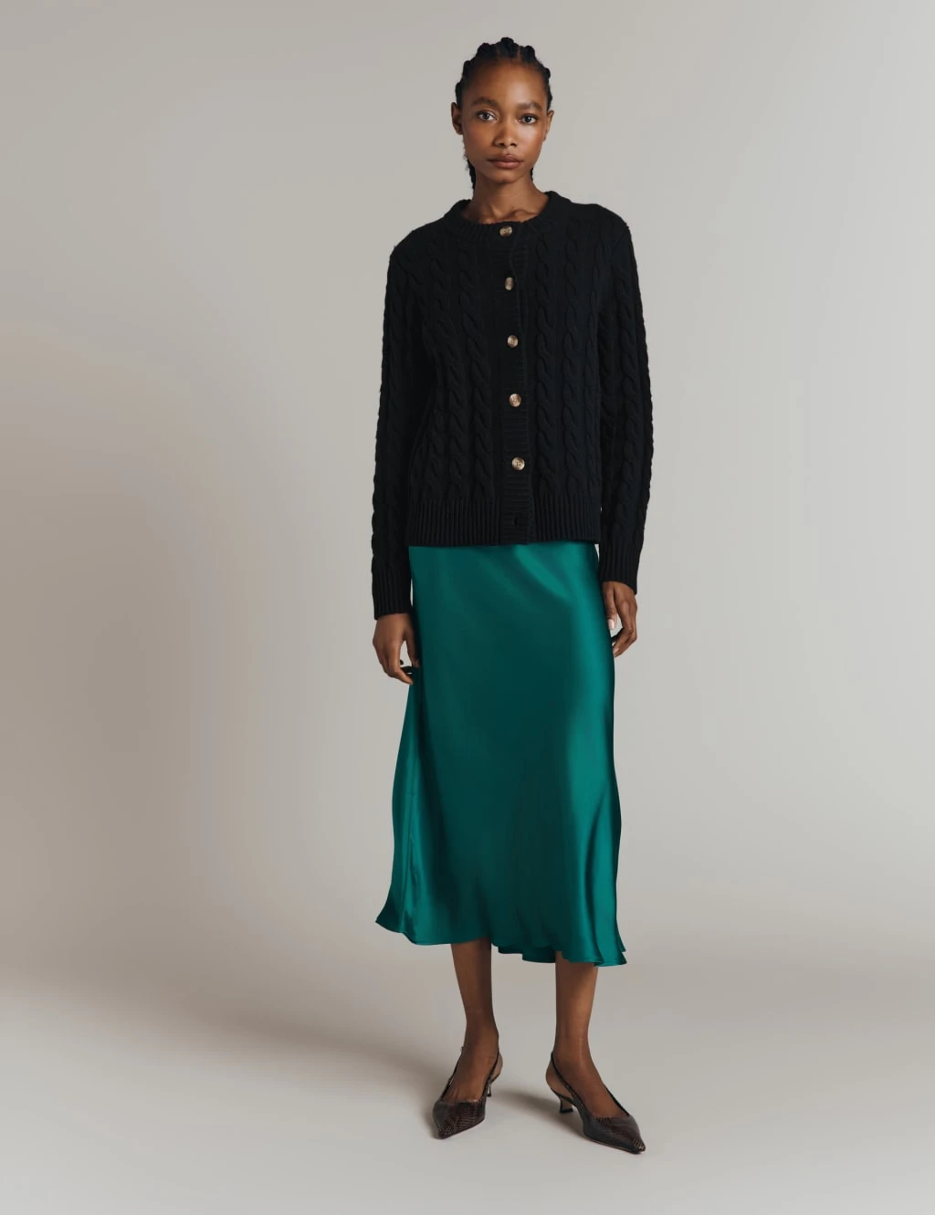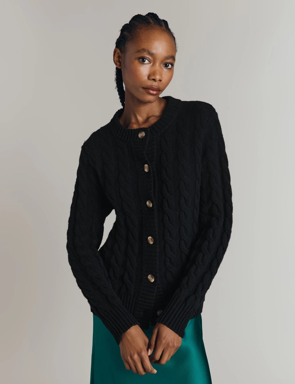 This cardigan from Ghost is crafted from a wool-rich yarn for extra cosiness. It’s designed in an easy regular fit, with a crew neckline and a neat button-through front. Cable knit detailing adds a traditional textured look.
