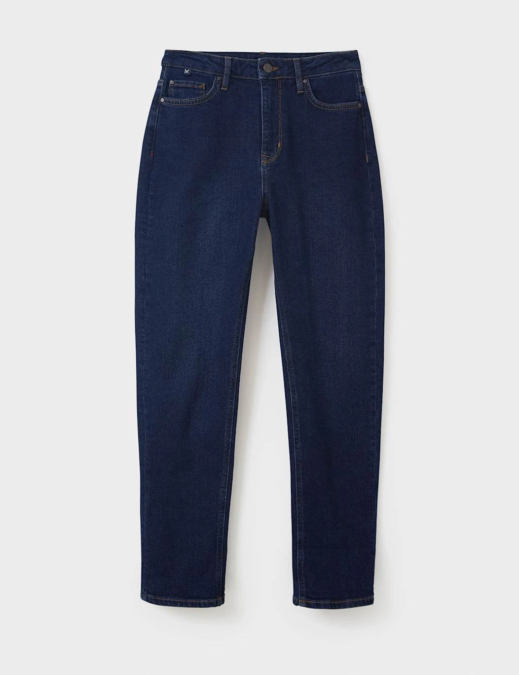 Refresh your denim collection with these striking girlfriend jeans from Crew Clothing. Made with a touch of stretch for a flexible feel, the flattering high-waisted pair fastens with a classic button and zip fastening. The timeless five-pocket style features branding on the button and rivets. It’s finished with embroidered detail on a back pocket for an authentic finish.