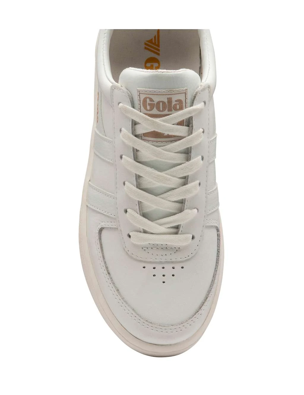 These leather trainers from Gola are versatile and comfy for everyday wear. The upper has branding at the side, tongue and heel, as well as secure lace fastenings, for a stylishly simple design. The chunky flatform sole is lightweight for all-day comfort.