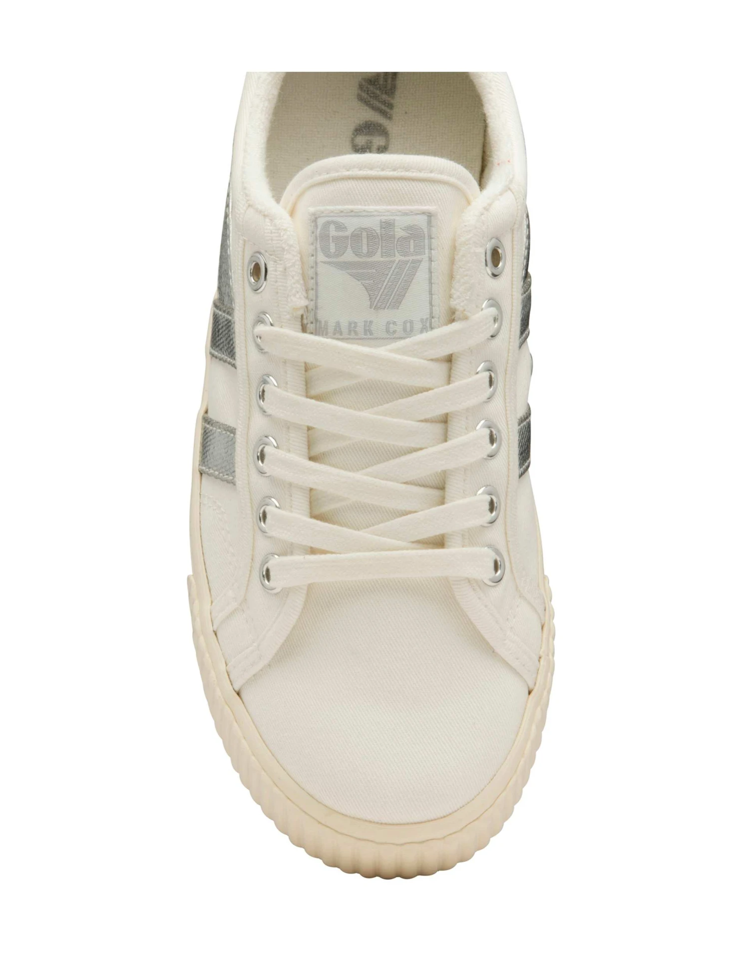 Bring a sporty feel to your casual wear with these Tennis Mark Cox trainers from Gola. This tennis-inspired plimsoll style is made of canvas, with a neat lace-up fastening. The colour-block design features gleaming metallic side stripes and wingflashes for a premium look, while a terry towelling lining provides comfort.