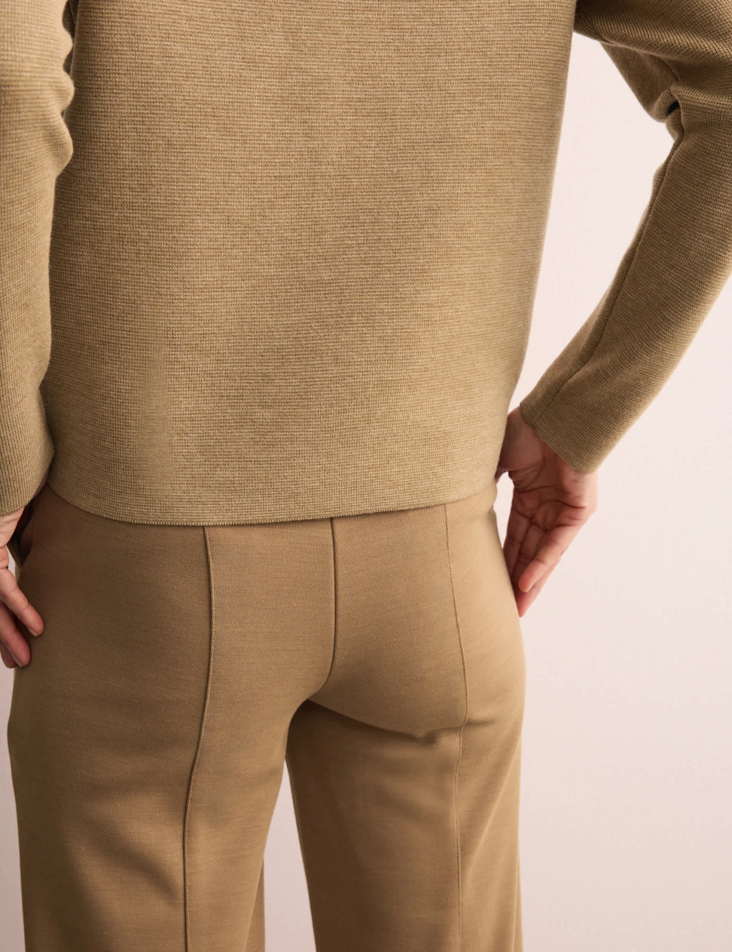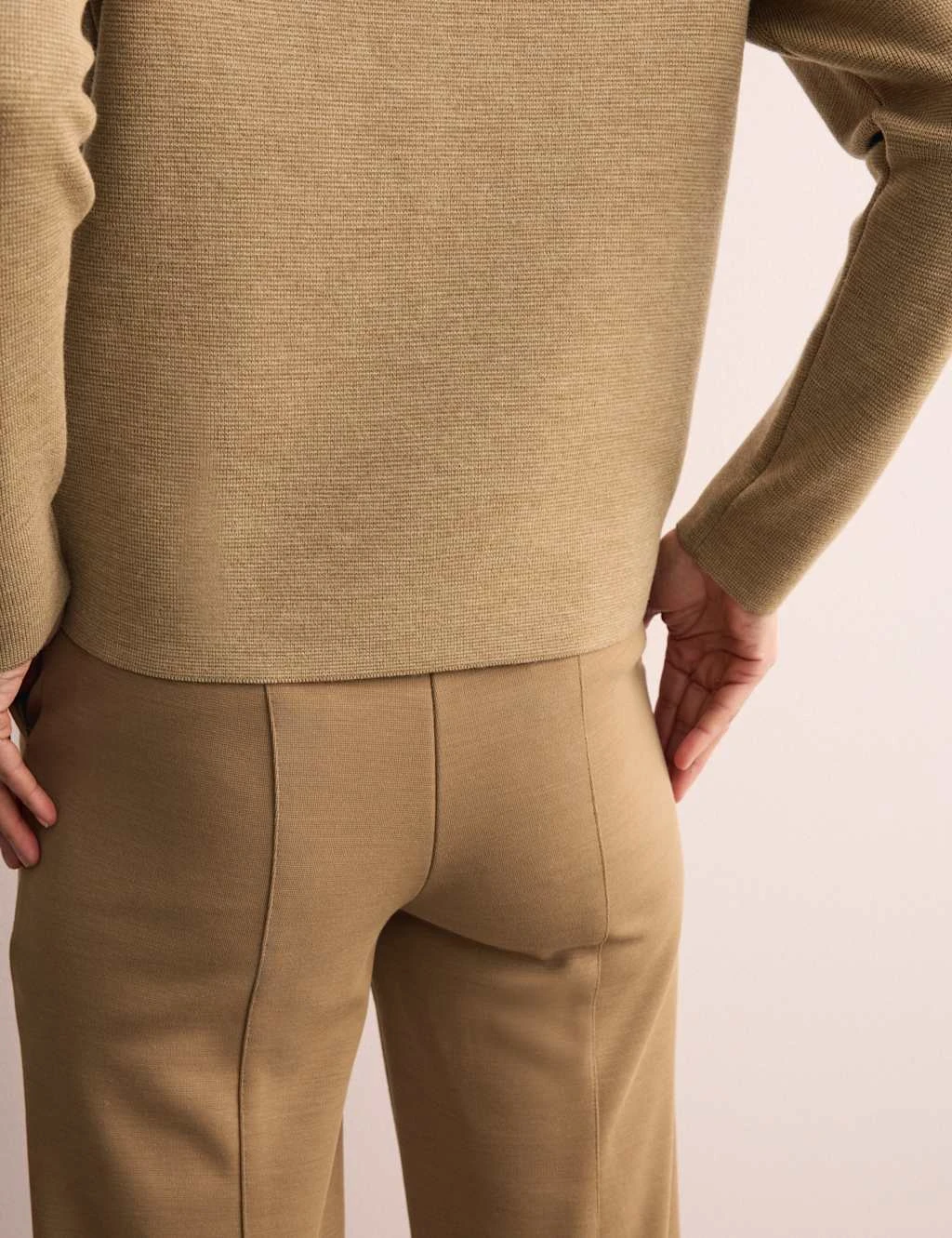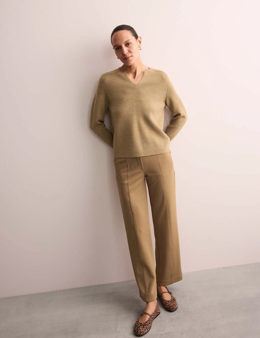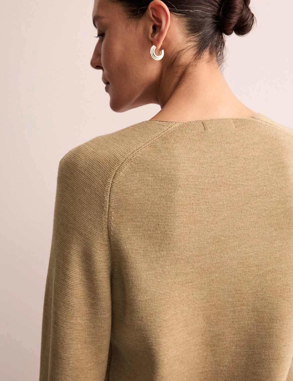 With its merino wool-rich material, this textured jumper from Jaeger is a luxurious layering choice. Nylon plating adds a stretchy feel, while a sculpted v-neckline creates an elegant finish. Wear with a denim mini skirt for a playful cold-weather ensemble.